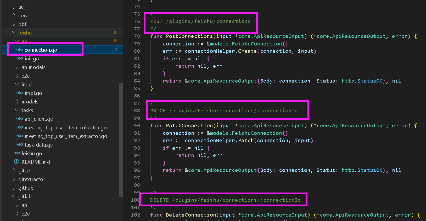 ### Search before asking - [X] I had searched in the [issues](https://github.com/apache/incubator-devlake/issues?q=is%3Aissue) and found no similar issues. ### What happened    ### What you expected to happen the api can be curl. ### How to reproduce 1.curl -POST http://devlake:8080/plugins/feishu/test 2.see the code of ApiResources. ### Anything else curl -POST http://devlake:8080/plugins/feishu/test ### Version main ### Are you willing to submit PR? - [X] Yes I am willing to submit a PR! ### Code of Conduct - [X] I agree to follow this project's [Code of Conduct](https://www.apache.org/foundation/policies/conduct) -- This is an automated message from the Apache Git Service. To respond to the message, please log on to GitHub and use the URL above to go to the specific comment. To unsubscribe, e-mail: [email protected] For queries about this service, please contact Infrastructure at: [email protected]