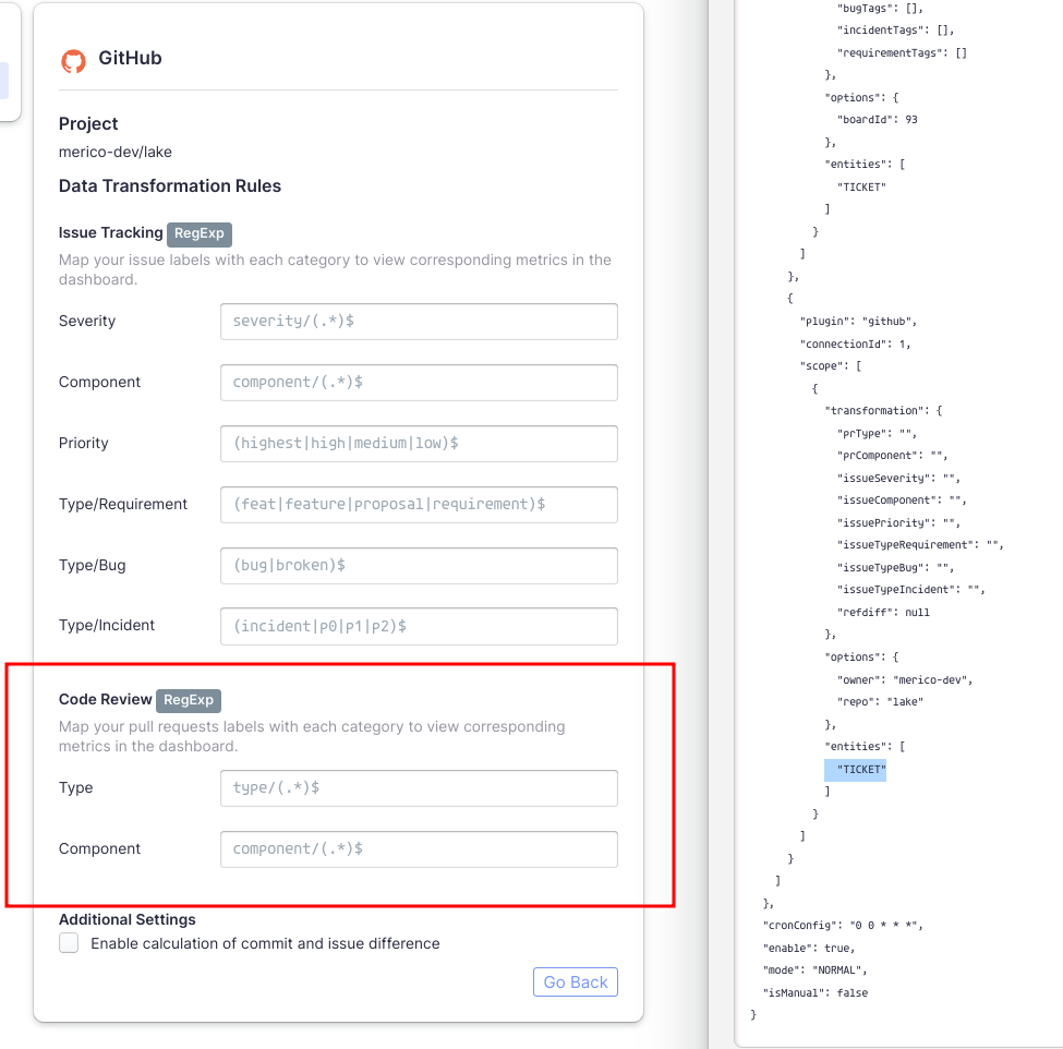 ### Search before asking - [X] I had searched in the [issues](https://github.com/apache/incubator-devlake/issues?q=is%3Aissue) and found no similar issues. ### What happened code review setting is showing while it was unchecked  however, it disappeared while it was checked... ![Uploading image.png…]() ### What you expected to happen code review transformation rules should be displayed while it was checked, vice-versa ### How to reproduce check/unchecked the "Data Entities" in step 2, and see error on step 3 ### Anything else _No response_ ### Version main ### Are you willing to submit PR? - [ ] Yes I am willing to submit a PR! ### Code of Conduct - [X] I agree to follow this project's [Code of Conduct](https://www.apache.org/foundation/policies/conduct) -- This is an automated message from the Apache Git Service. To respond to the message, please log on to GitHub and use the URL above to go to the specific comment. To unsubscribe, e-mail: [email protected] For queries about this service, please contact Infrastructure at: [email protected]
