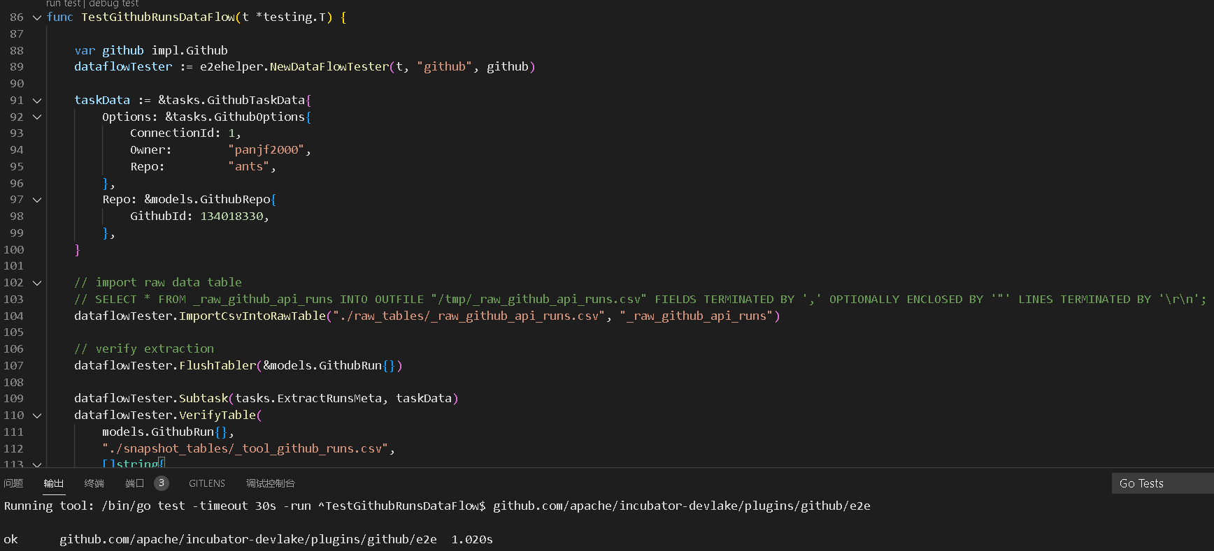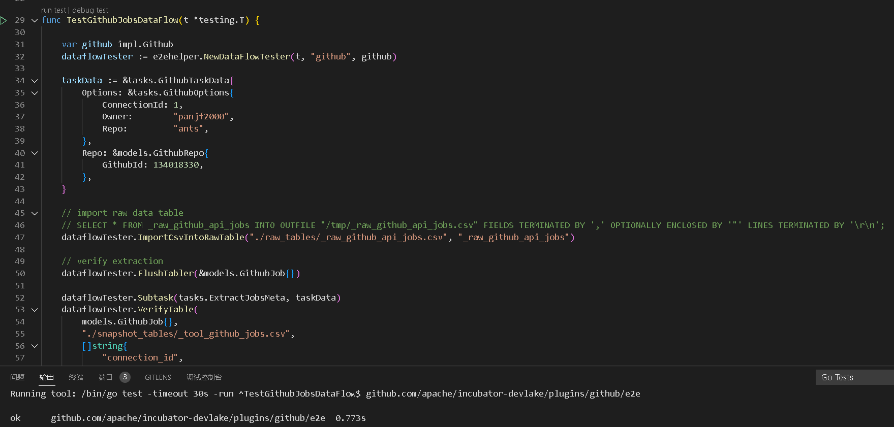 # Summary Add TestGithubRunsDataFlow Add TestGithubJobsDataFlow <!-- Thanks for submitting a pull request! We appreciate you spending the time to work on these changes. Please fill out as many sections below as possible. --> ### Does this close any open issues? Closes #2855 ### Screenshots   ### Other Information Any other information that is important to this PR. -- This is an automated message from the Apache Git Service. To respond to the message, please log on to GitHub and use the URL above to go to the specific comment. To unsubscribe, e-mail: [email protected] For queries about this service, please contact Infrastructure at: [email protected]