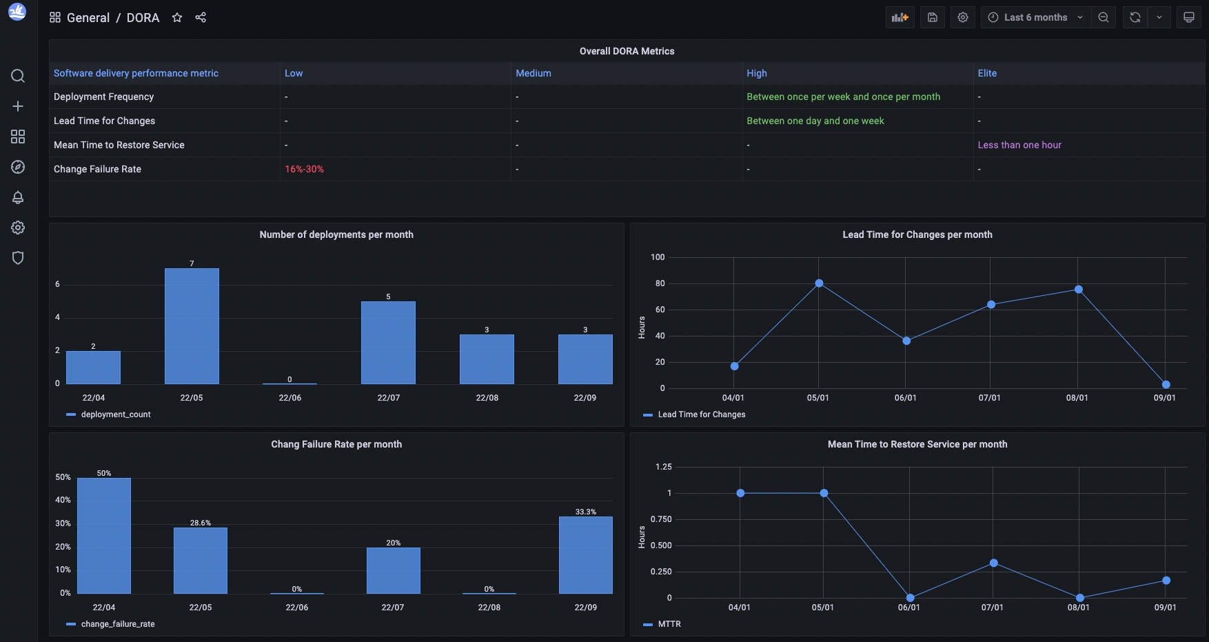 ### Search before asking - [X] I had searched in the [issues](https://github.com/apache/incubator-devlake/issues?q=is%3Aissue) and found no similar feature requirement. ### Description Make a dashboard for DORA. See mockup:  ### Use case _No response_ ### Related issues #2853 ### Are you willing to submit a PR? - [X] Yes I am willing to submit a PR! ### Code of Conduct - [X] I agree to follow this project's [Code of Conduct](https://www.apache.org/foundation/policies/conduct) -- This is an automated message from the Apache Git Service. To respond to the message, please log on to GitHub and use the URL above to go to the specific comment. To unsubscribe, e-mail: [email protected] For queries about this service, please contact Infrastructure at: [email protected]