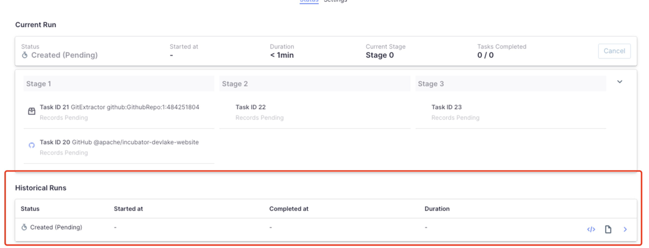 ### Search before asking - [X] I had searched in the [issues](https://github.com/apache/incubator-devlake/issues?q=is%3Aissue) and found no similar issues. ### What happened the page not refresh after **Run Now** is clicked.  the page not refresh after **Save And Run Now** is clicked.  is ### What you expected to happen The page will refresh after **Run Now** or **Save And Run Now** is clicked. ### How to reproduce Click **Run Now** or **Save And Run Now** buttons. ### Anything else _No response_ ### Version main ### Are you willing to submit PR? - [X] Yes I am willing to submit a PR! ### Code of Conduct - [X] I agree to follow this project's [Code of Conduct](https://www.apache.org/foundation/policies/conduct) -- This is an automated message from the Apache Git Service. To respond to the message, please log on to GitHub and use the URL above to go to the specific comment. To unsubscribe, e-mail: [email protected] For queries about this service, please contact Infrastructure at: [email protected]