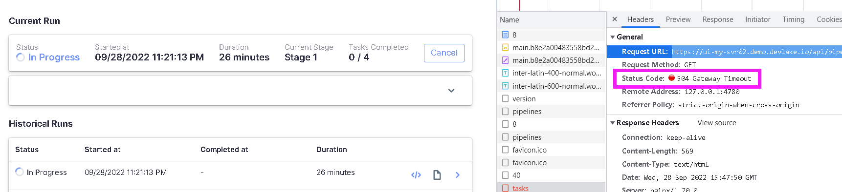 It say gateway time out, when try to getting task? -- This is an automated message from the Apache Git Service. To respond to the message, please log on to GitHub and use the URL above to go to the specific comment. To unsubscribe, e-mail: [email protected] For queries about this service, please contact Infrastructure at: [email protected]