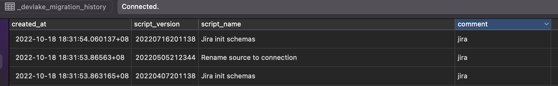 # Summary Refactor all migration scripts to implement the interface core.MigrationScript. Related to #3176 Migration adopts BasicRes ### Does this close any open issues? Closes #3469 ### Screenshots records in `_devlake_migration_history`:  created tables:  ### Other Information Any other information that is important to this PR. -- This is an automated message from the Apache Git Service. To respond to the message, please log on to GitHub and use the URL above to go to the specific comment. To unsubscribe, e-mail: [email protected] For queries about this service, please contact Infrastructure at: [email protected]