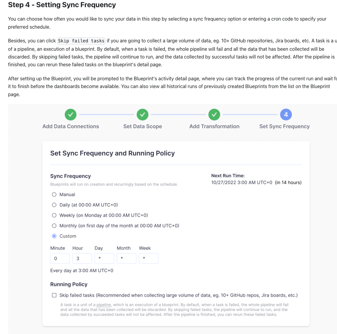 ### ⚠️ Pre Checklist > Please complete _ALL_ items in this checklist, and remove before submitting - [x] I have `run npm build` and `run npm serve` locally before submitting this PR - [x] I have read through the [Contributing](https://devlake.apache.org/community/) Documentation # Summary 1. add docs: manuals for skipping failed tasks 2. fix typos ### Does this close any open issues? Docs for https://github.com/apache/incubator-devlake/issues/2499 ### Screenshots  -- This is an automated message from the Apache Git Service. To respond to the message, please log on to GitHub and use the URL above to go to the specific comment. To unsubscribe, e-mail: [email protected] For queries about this service, please contact Infrastructure at: [email protected]