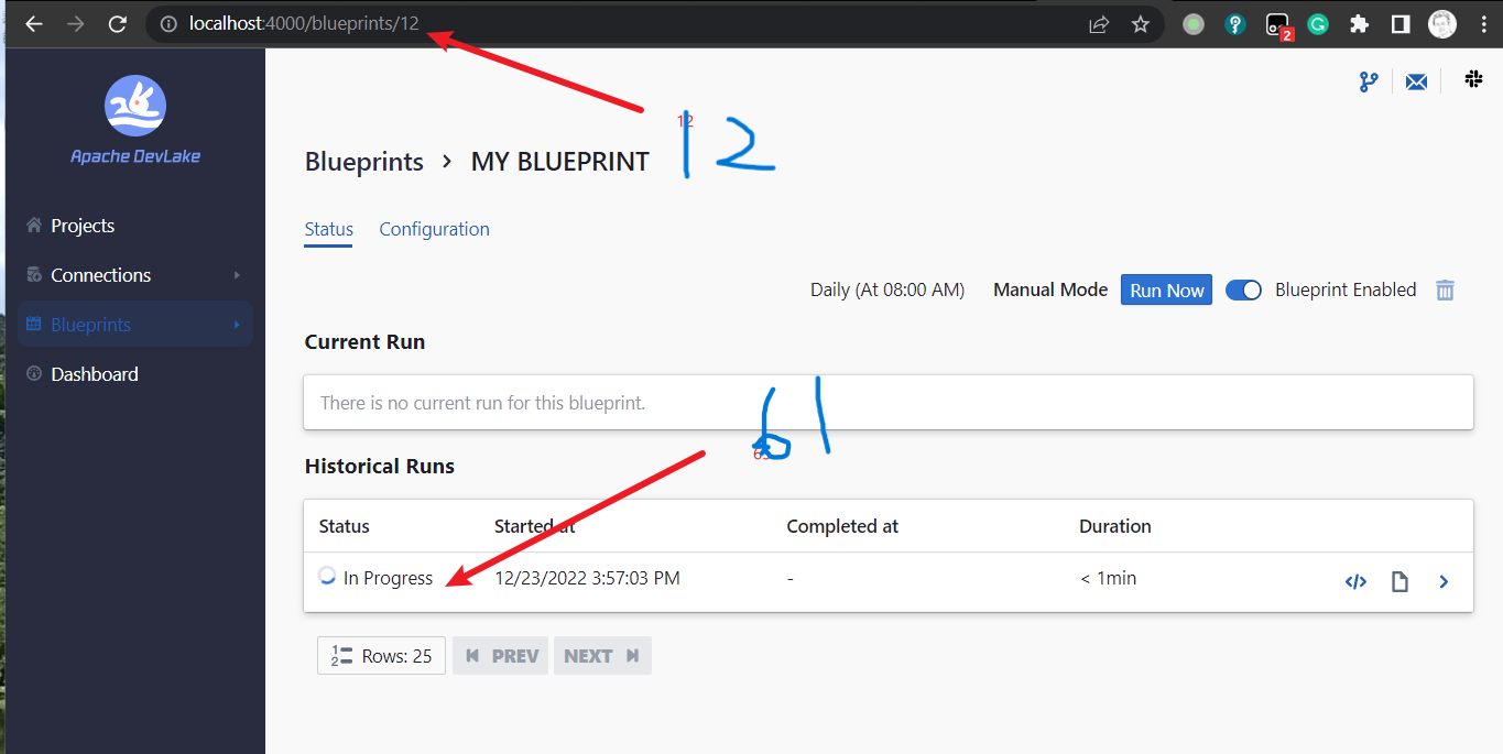 ### Search before asking - [X] I had searched in the [issues](https://github.com/apache/incubator-devlake/issues?q=is%3Aissue) and found no similar issues. ### What happened    ### What do you expect to happen should be redirecting to `/blueprints/12` instead of `/blueprints/61` plus, 404 error should be prompt if server returned 404 ### How to reproduce create any bp and click on **Save and Run** ### Anything else _No response_ ### Version main ### Are you willing to submit PR? - [ ] Yes I am willing to submit a PR! ### Code of Conduct - [X] I agree to follow this project's [Code of Conduct](https://www.apache.org/foundation/policies/conduct) -- This is an automated message from the Apache Git Service. To respond to the message, please log on to GitHub and use the URL above to go to the specific comment. To unsubscribe, e-mail: [email protected] For queries about this service, please contact Infrastructure at: [email protected]