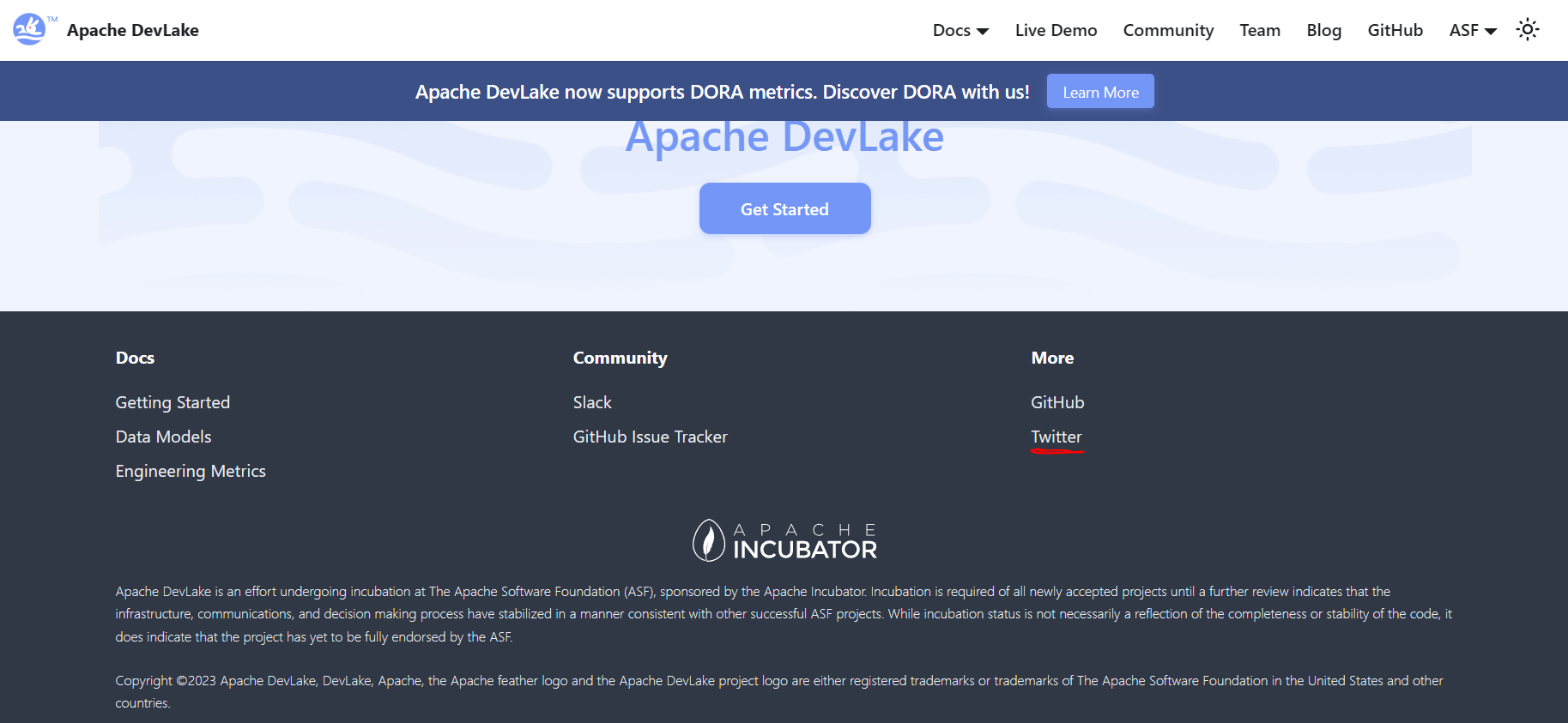 ### ⚠️ Pre Checklist > Please complete _ALL_ items in this checklist, and remove before submitting - [X] I have `npm run build` and `npm run serve` locally before submitting this PR - [X] I have read through the [Contributing](https://devlake.apache.org/community/) Documentation # Summary <!-- Thanks for submitting a PR! We appreciate you spending the time to work on these changes. Please fill out as many sections below as possible. --> ### Does this close any open issues? Closes #367 ### Screenshots - I have tried this on my local & it worked as expected, adding screenshot:  ### Other Information I have tried adding DevLake's Twitter handle on footer -- This is an automated message from the Apache Git Service. To respond to the message, please log on to GitHub and use the URL above to go to the specific comment. To unsubscribe, e-mail: [email protected] For queries about this service, please contact Infrastructure at: [email protected]