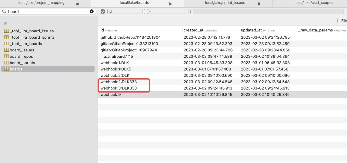 ### Search before asking - [X] I had searched in the [issues](https://github.com/apache/incubator-devlake/issues?q=is%3Aissue) and found no similar issues. ### What happened POST to register an incident, the board id is: webhook:connectionID:boardKey  but the project mapping row id is: webhook:connectionID  so, When the project and board are associated, there will be a mismatch. ``` select * from issues i join board_issues bi on i.id = bi.issue_id join boards b on bi.board_id = b.id join project_mapping pm on **b.id = pm.row_id** where pm.project_name in ('sonarqube') ``` ### What do you expect to happen so, When the project and board are associated correctly. ### How to reproduce post a issue by webhook ### Anything else _No response_ ### Version main ### Are you willing to submit PR? - [X] Yes I am willing to submit a PR! ### Code of Conduct - [X] I agree to follow this project's [Code of Conduct](https://www.apache.org/foundation/policies/conduct) -- This is an automated message from the Apache Git Service. To respond to the message, please log on to GitHub and use the URL above to go to the specific comment. To unsubscribe, e-mail: [email protected] For queries about this service, please contact Infrastructure at: [email protected]