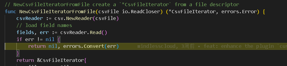 ### Search before asking - [X] I had searched in the [issues](https://github.com/apache/incubator-devlake/issues?q=is%3Aissue) and found no similar issues. ### What happened   In the function ImportCsvIntoRawTable. there is an error lost at NewCsvFileIterator. It allowed nil csvIter to continue work and panic in an unexpected place. ### What do you expect to happen catch and show the error. ### How to reproduce e2e test with data error cvs file. ### Anything else _No response_ ### Version main ### Are you willing to submit PR? - [X] Yes I am willing to submit a PR! ### Code of Conduct - [X] I agree to follow this project's [Code of Conduct](https://www.apache.org/foundation/policies/conduct) -- This is an automated message from the Apache Git Service. To respond to the message, please log on to GitHub and use the URL above to go to the specific comment. To unsubscribe, e-mail: [email protected] For queries about this service, please contact Infrastructure at: [email protected]