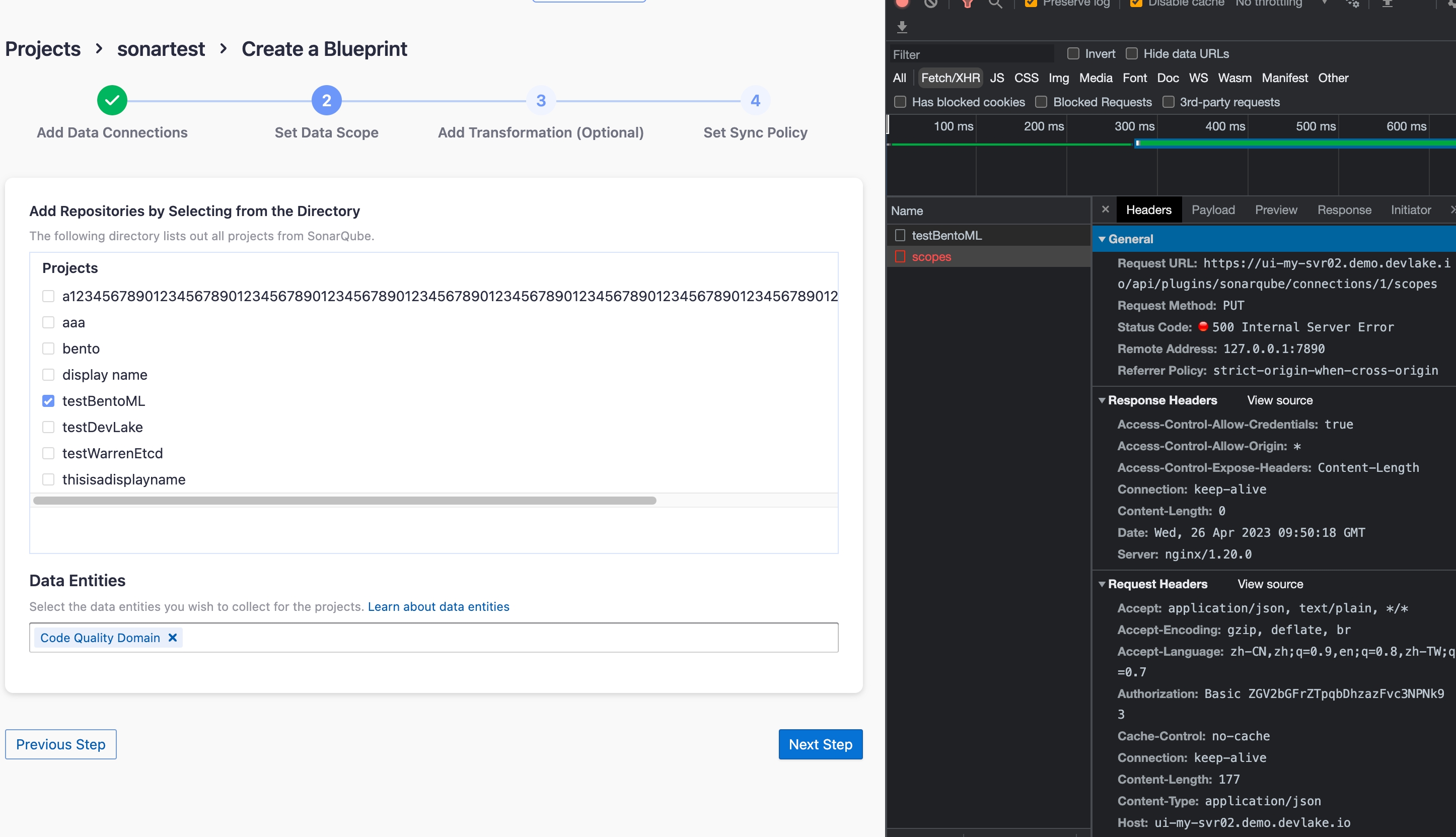 ### Search before asking - [X] I had searched in the [issues](https://github.com/apache/incubator-devlake/issues?q=is%3Aissue) and found no similar issues. ### What happened  ### What do you expect to happen Should work properly ### How to reproduce select scopes for sonarqube ### Anything else _No response_ ### Version main ### Are you willing to submit PR? - [X] Yes I am willing to submit a PR! ### Code of Conduct - [X] I agree to follow this project's [Code of Conduct](https://www.apache.org/foundation/policies/conduct) -- This is an automated message from the Apache Git Service. To respond to the message, please log on to GitHub and use the URL above to go to the specific comment. To unsubscribe, e-mail: [email protected] For queries about this service, please contact Infrastructure at: [email protected]