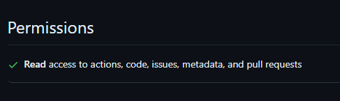 Hi, thank you for the feedback. I selected 5 repository permissions. No permissions seemed to be needed on the organization level: Actions: Read only Contents: Read only Issues: Read only Metadata: Read only Pull requests: Read only  I'm not 100% sure if those are all the permissions needed, but after selecting those, I got a successful run on my test blueprint. Thanks for the feedback on the code. I'll look into the Jira implementation and see what I can do with it. -- This is an automated message from the Apache Git Service. To respond to the message, please log on to GitHub and use the URL above to go to the specific comment. To unsubscribe, e-mail: [email protected] For queries about this service, please contact Infrastructure at: [email protected]
