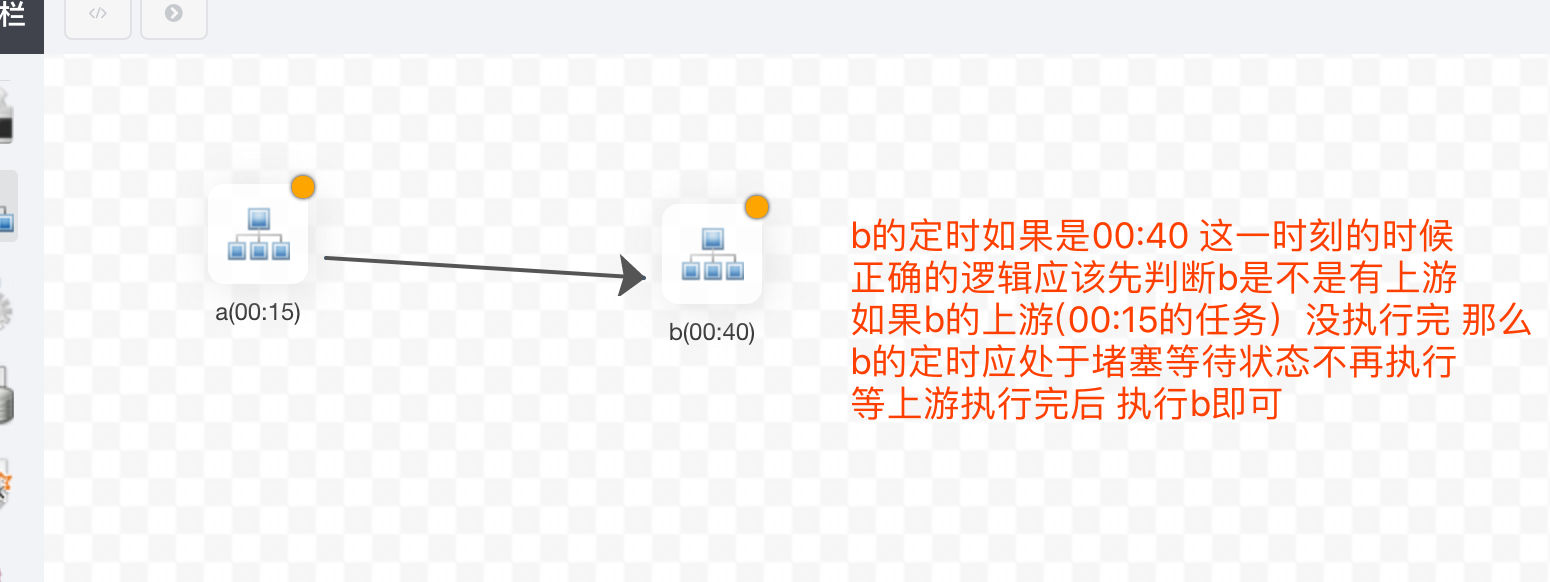 chengcxy opened a new issue #1940: [BUG] 子工作流sub_process的定时逻辑bug 导致子工作流重复执行 URL: https://github.com/apache/incubator-dolphinscheduler/issues/1940  这里我有3个工作流,a,b,all 其中all是总调度流 使用sub_process组件 将a和b串行(a>b) 对all设置了定时 00:15 对b设置了定时00:40(数据00:30 才会写到b要读的表里 因此需要设定一个时间大于00:30) 此时就会有一个极端情况下的bug all工作流里的a从00:15开始执行 但是a的结束时间 >00:40 假设是00:50,那么在00:40分a未执完的情况下b的定时调度就启动了 等到了00:50分 all工作流里的b又会被启动 造成b重复