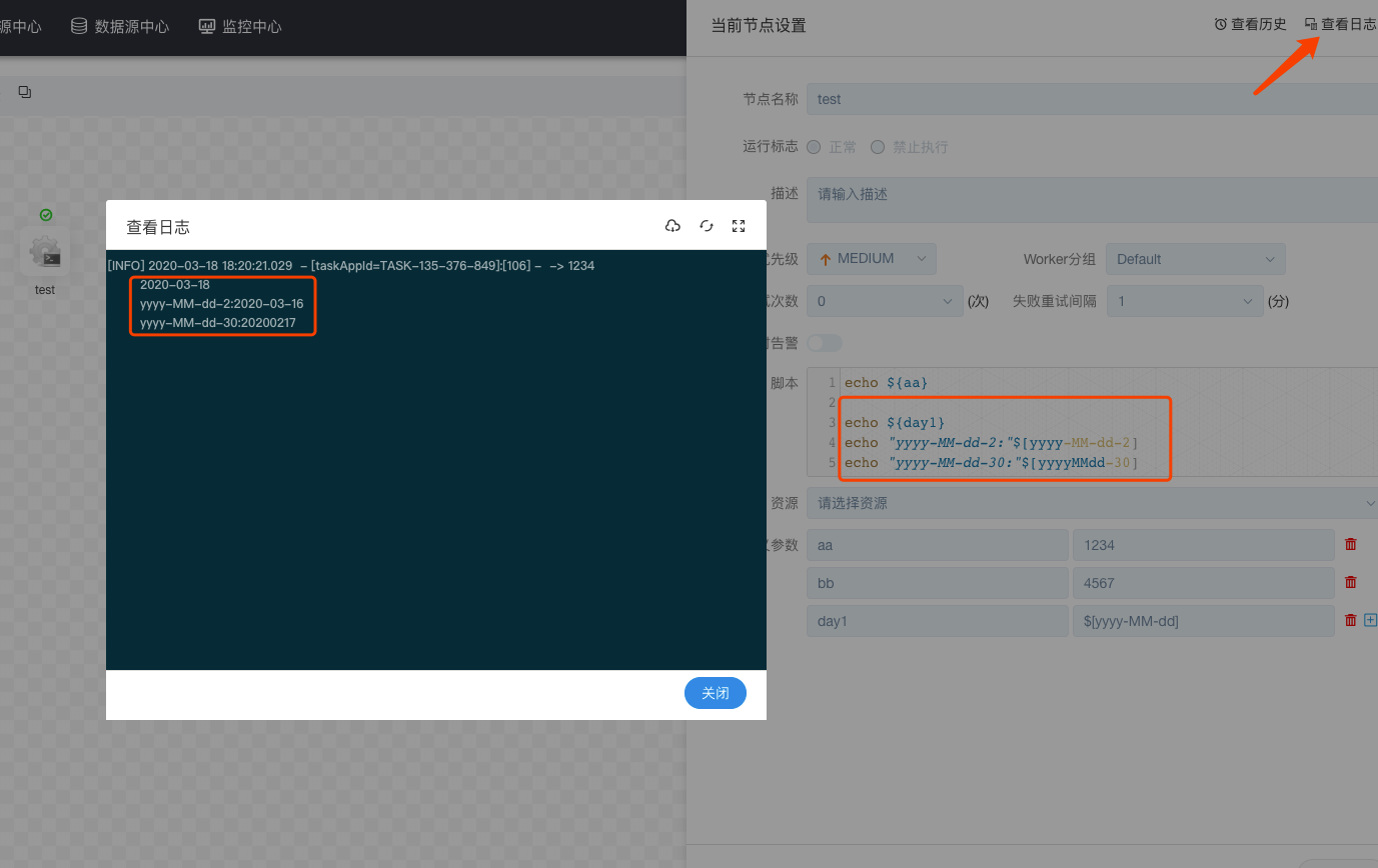 dailidong commented on issue #2208: [Feature]can not get history data time when run history or complement job URL: https://github.com/apache/incubator-dolphinscheduler/issues/2208#issuecomment-600545191 hiļ¼did you see the shell task runtime log?