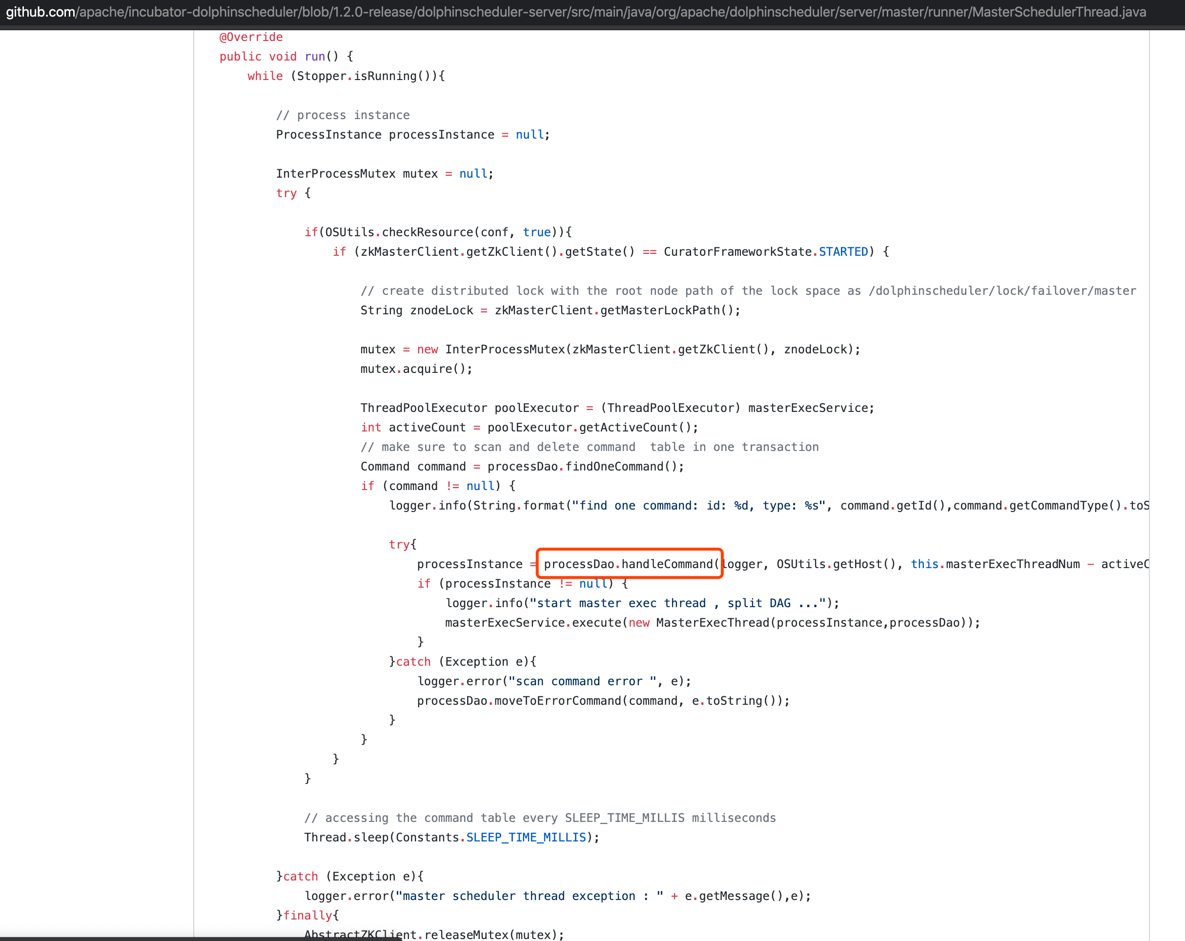dailidong commented on issue #2231: [QUESTION] The same task start twice(任务重复启动) URL: https://github.com/apache/incubator-dolphinscheduler/issues/2231#issuecomment-601771961 I review the relate code , but i can't find the problem  I will try to find the cause, if you have something new to report, please leave a message