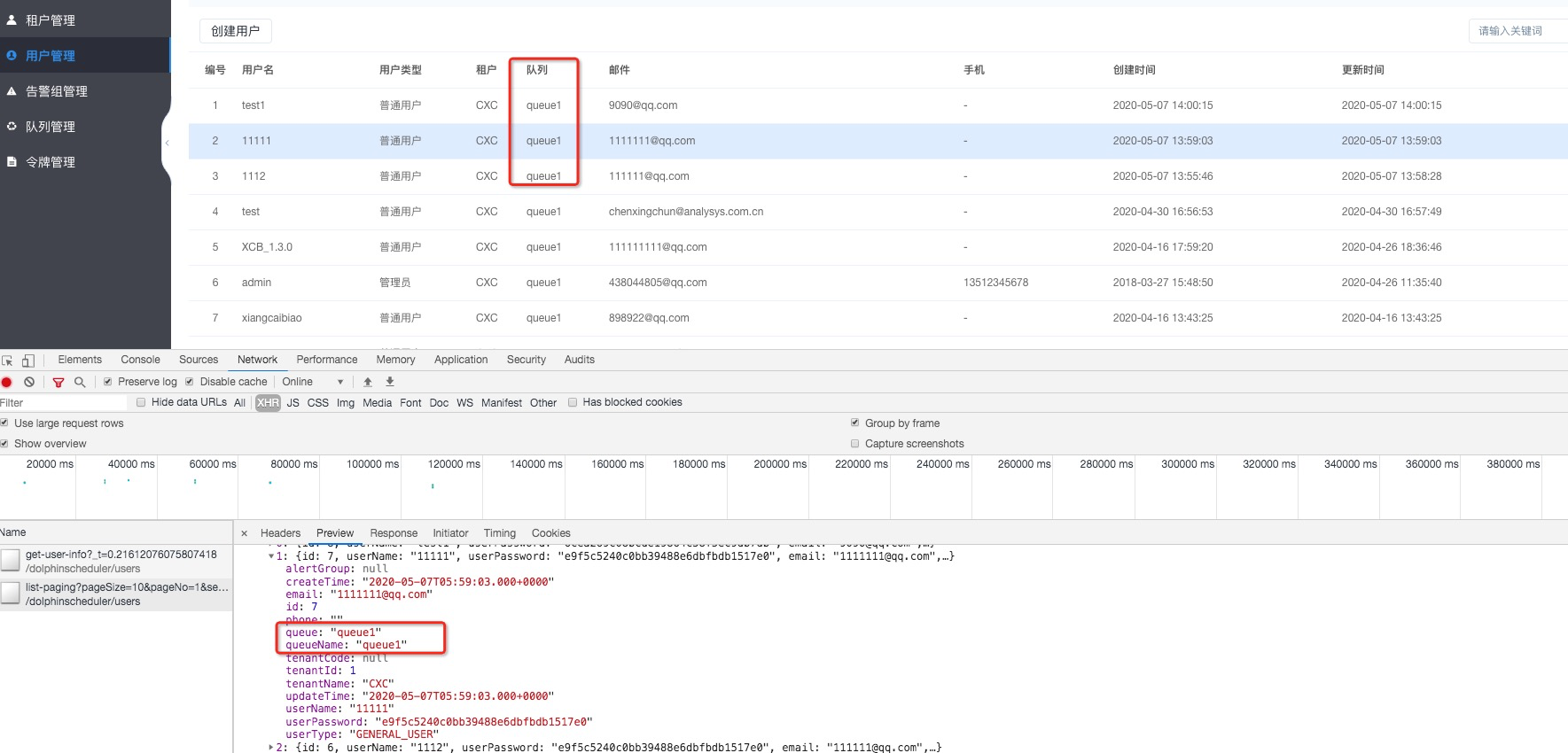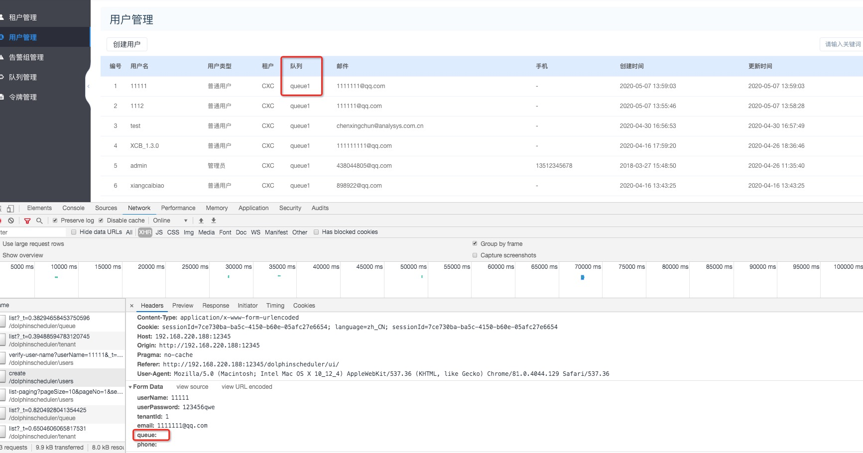 When creating a user, the queue value is not passed in the front end, and the queue in the database is also empty, but the user management is queried, and the queue is returned by the back end    ---------------------------------------------------------------- This is an automated message from the Apache Git Service. To respond to the message, please log on to GitHub and use the URL above to go to the specific comment. For queries about this service, please contact Infrastructure at: [email protected]