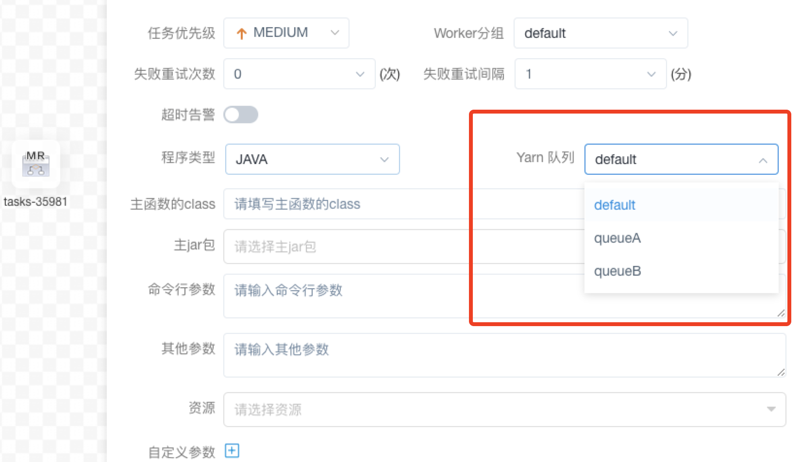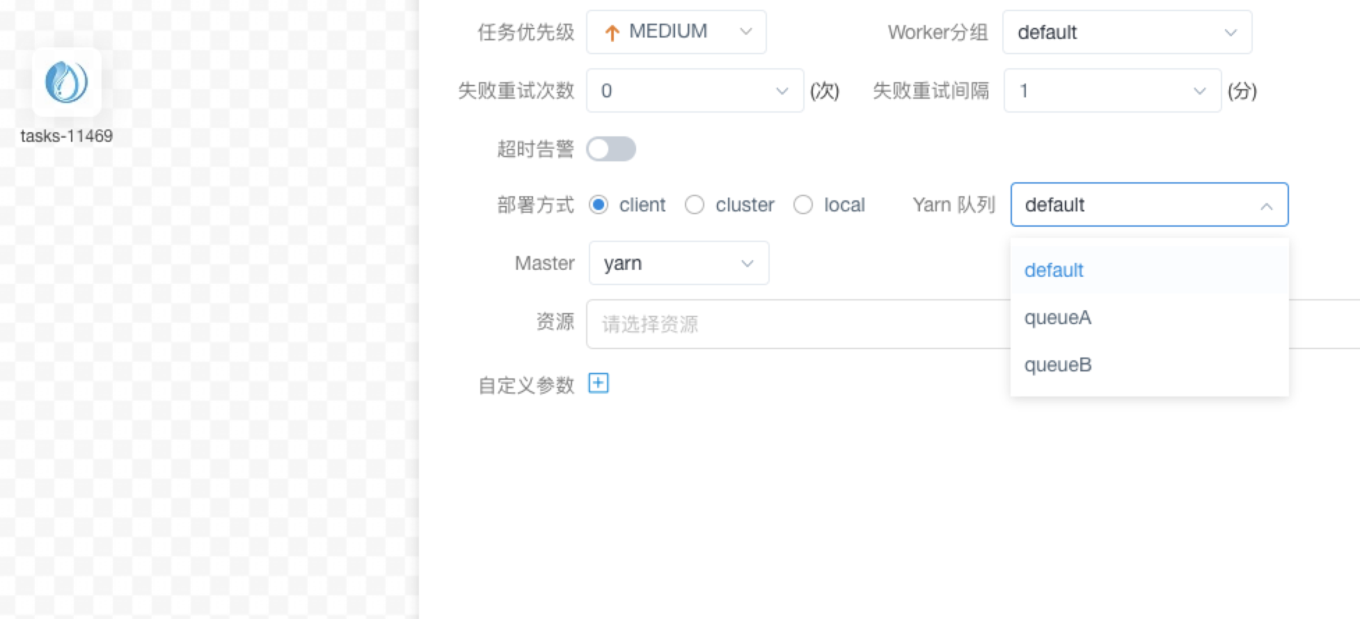 > Is there any queue deletion restriction on this block, such as tasks that have been associated with the queue, is it impossible for users to delete the queue? This PR deals with [Mr / spark / Flink / waterdrop] When creating the workflow, you can select the yarn queue And the content in the yarn queue comes from [yarn queue management]     -------------------------------------------------------------------------------------- I took a look at the [yarn queue management] and did not delete the function If necessary, it can be implemented with a new pr  ---------------------------------------------------------------- This is an automated message from the Apache Git Service. To respond to the message, please log on to GitHub and use the URL above to go to the specific comment. For queries about this service, please contact Infrastructure at: [email protected]