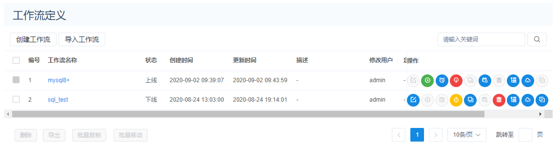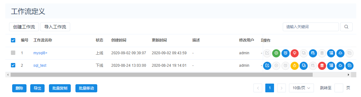工作流定义和实例中更改批量操作按钮展示状态,不选中具体工作流定义或实例的时候禁止点击状态。