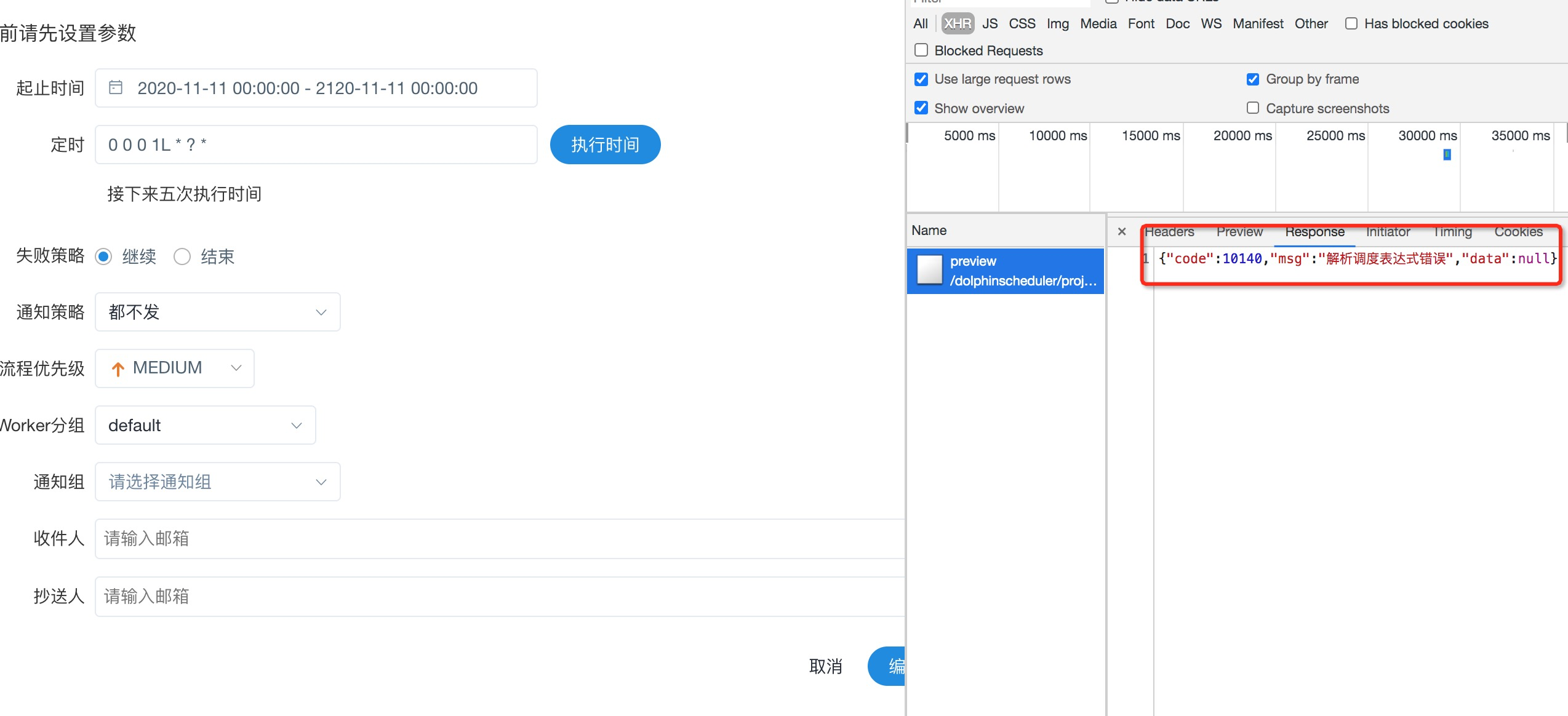 1.Add or Edit timing, select the last week of the month regularly 2. Click the preview or save button, an error will be reported     **Which version of Dolphin Scheduler:** -[1.3.2] ---------------------------------------------------------------- This is an automated message from the Apache Git Service. To respond to the message, please log on to GitHub and use the URL above to go to the specific comment. For queries about this service, please contact Infrastructure at: [email protected]