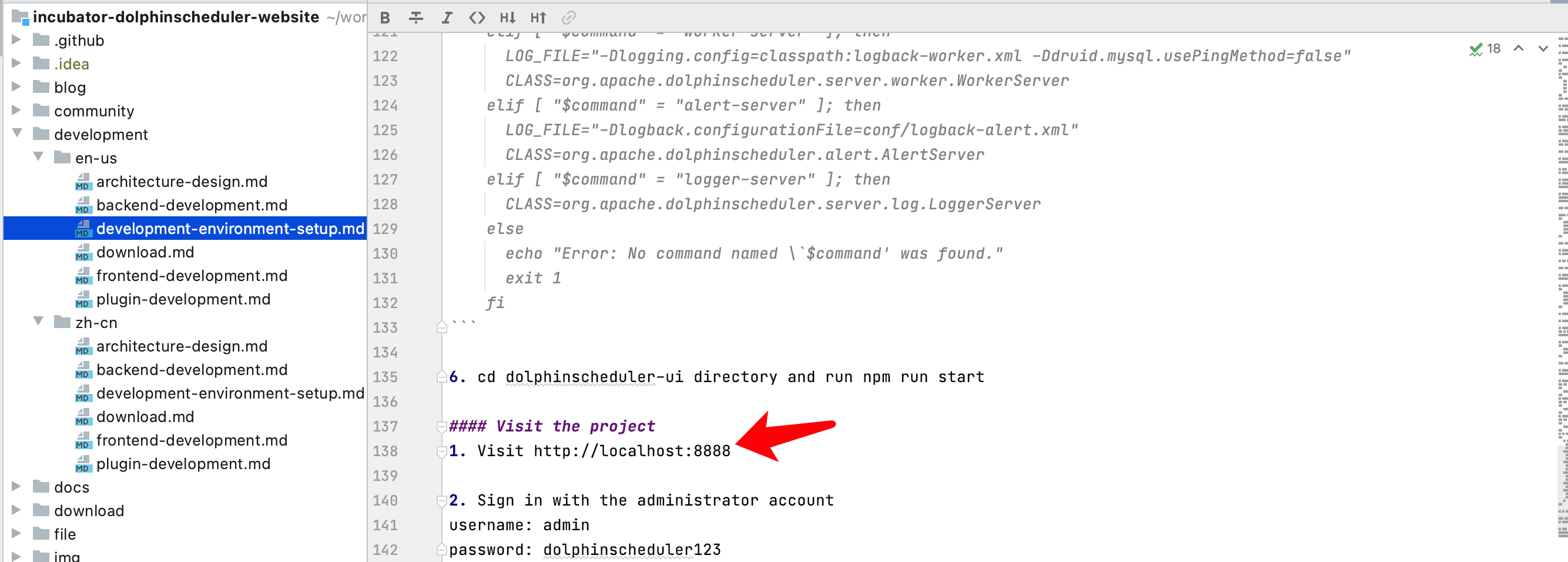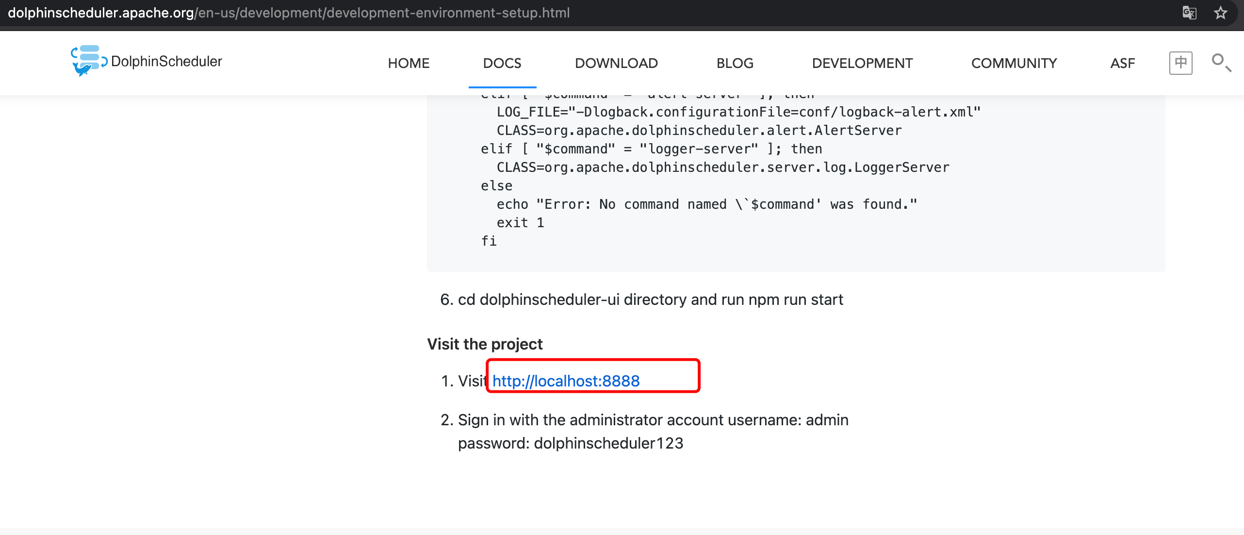 **Describe the bug** there is a bug on the official website, github repository: https://github.com/apache/incubator-dolphinscheduler-website http://localhost:8888 is wrong, the right url is: http://localhost:12345/dolphinscheduler  the related code please see the following picture:  ---------------------------------------------------------------- This is an automated message from the Apache Git Service. To respond to the message, please log on to GitHub and use the URL above to go to the specific comment. For queries about this service, please contact Infrastructure at: [email protected]