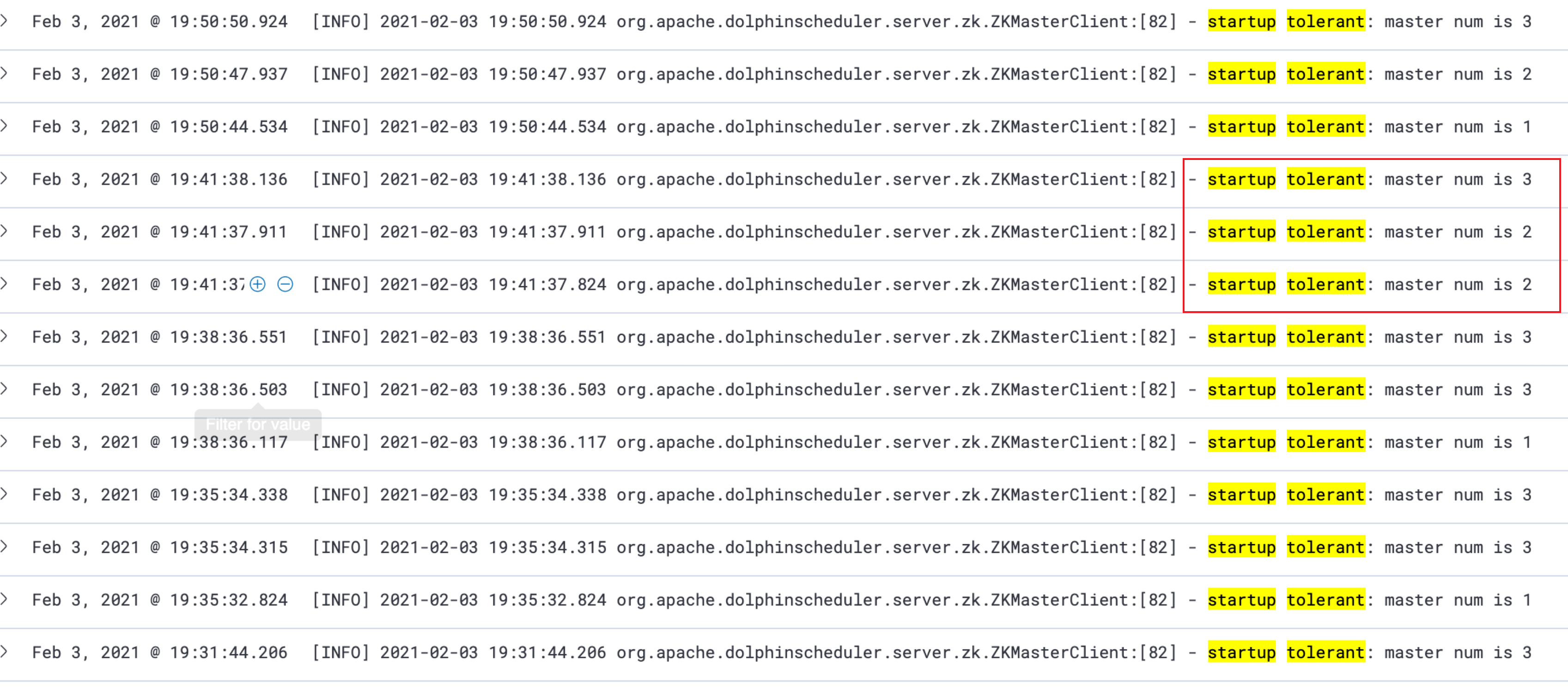 **For better global communication, Please describe it in English. If you feel the description in English is not clear, then you can append description in Chinese(just for Mandarin(CN)), thx! ** **Describe the bug** If multiple Masters are started at the same time, it will cause global fault tolerance logic errors. Multiple Masters that are online at the same time are recognized, fault tolerant will be skipped 多个Master同时启动,会导致全局容错逻辑错误,识别到多个同时在线的Master,会跳过容错    **Expected behavior** Master registration Zookeeper and start fault tolerance at the same time Master 注册Zookeeper和启动容错同时进行 **Which version of Dolphin Scheduler:** -[1.3.*] ---------------------------------------------------------------- This is an automated message from the Apache Git Service. To respond to the message, please log on to GitHub and use the URL above to go to the specific comment. For queries about this service, please contact Infrastructure at: [email protected]
