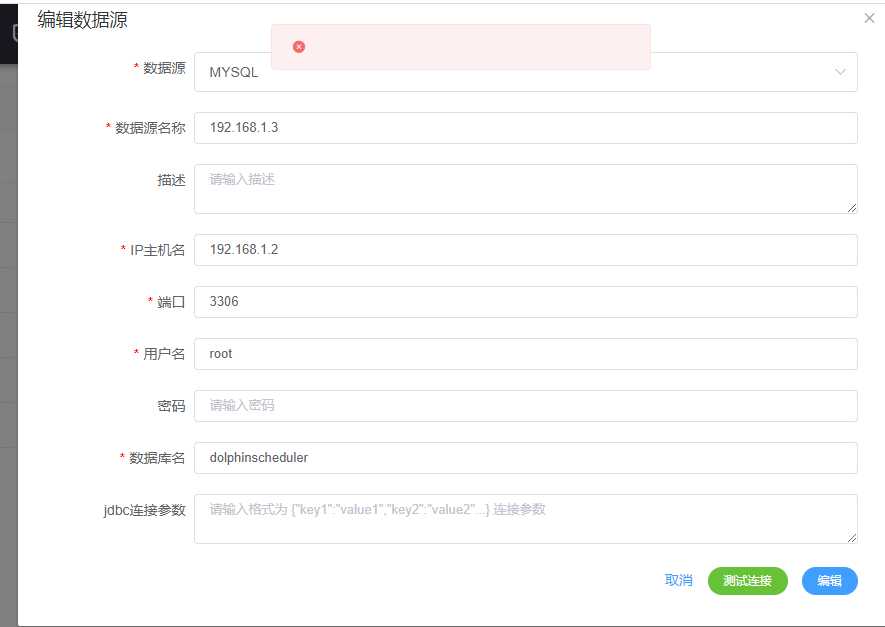 ## Purpose of the pull request Fix a potential problem that editing an existing mysql data source may cause the backend to return null data. reproduce step: 1. Create a normal MySQL data source 2. Modify the IP of the data source created in the step 1, by modify ip to a non-existent IP, and then directly click the edit button (skip the test connection), then we'll seen an error message tip with no content  Request URL: http://localhost:8888/dolphinscheduler/datasources/update response {"code":null,"msg":null,"data":null} ## Brief change log fix a special case in edit an existing datasource. ```java Result<Object> isConnection = checkConnection(dataSource.getType(), connectionParam); if (Status.SUCCESS.getCode() != isConnection.getCode()) { return result; } ``` The result instance does not have a certain code and msg value, which results in the content returned to the front end shows as `nul`l. In this case, just return isConnection directly. ## Verify this pull request Using Existed UTs. Alse munutal test works well -- This is an automated message from the Apache Git Service. To respond to the message, please log on to GitHub and use the URL above to go to the specific comment. For queries about this service, please contact Infrastructure at: [email protected]