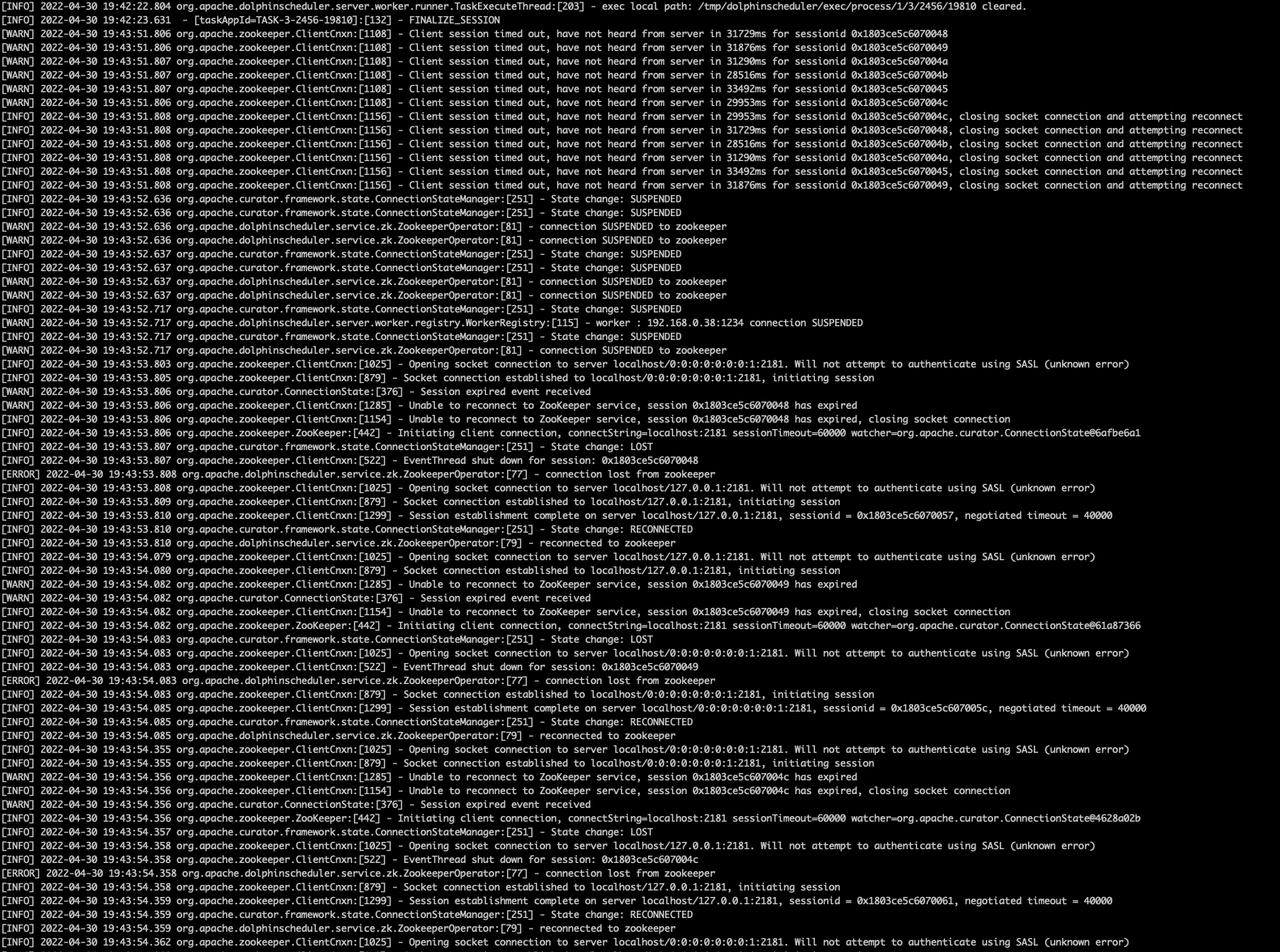 ### Search before asking - [X] I had searched in the [issues](https://github.com/apache/dolphinscheduler/issues?q=is%3Aissue) and found no similar issues. ### What happened The way I use is the pseudo stand-alone cluster version of dolphin, but sometimes the master and worker nodes will hang up by themselves, and will not recover by themselves after that, unless the service is stopped and restarted. What I want to express is that this seems very unreasonable in production. I don’t know if there is an automated way to automatically restart the master and worker after they are offline.   ### What you expected to happen When a failure occurs, it can automatically restart and recover. ### How to reproduce no ### Anything else no ### Version 1.3.9 ### Are you willing to submit PR? - [ ] Yes I am willing to submit a PR! ### Code of Conduct - [X] I agree to follow this project's [Code of Conduct](https://www.apache.org/foundation/policies/conduct) -- This is an automated message from the Apache Git Service. To respond to the message, please log on to GitHub and use the URL above to go to the specific comment. To unsubscribe, e-mail: [email protected] For queries about this service, please contact Infrastructure at: [email protected]