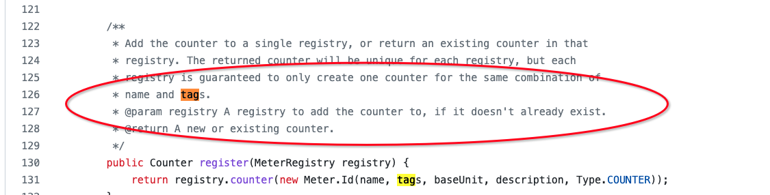 https://github.com/micrometer-metrics/micrometer/blob/4de0d5f70dbd05dc1d66b48012399e90b22a6005/micrometer-core/src/main/java/io/micrometer/core/instrument/Counter.java#L122-L132 Not sure if there is a way to do the trick more gracefully. -- This is an automated message from the Apache Git Service. To respond to the message, please log on to GitHub and use the URL above to go to the specific comment. To unsubscribe, e-mail: [email protected] For queries about this service, please contact Infrastructure at: [email protected]