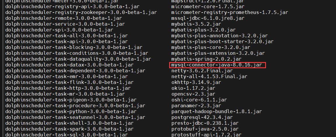 > Can you enter the docker image and see if exist the MySQL jar in libs or not. Yes, the file is here. work  api  -- This is an automated message from the Apache Git Service. To respond to the message, please log on to GitHub and use the URL above to go to the specific comment. To unsubscribe, e-mail: [email protected] For queries about this service, please contact Infrastructure at: [email protected]