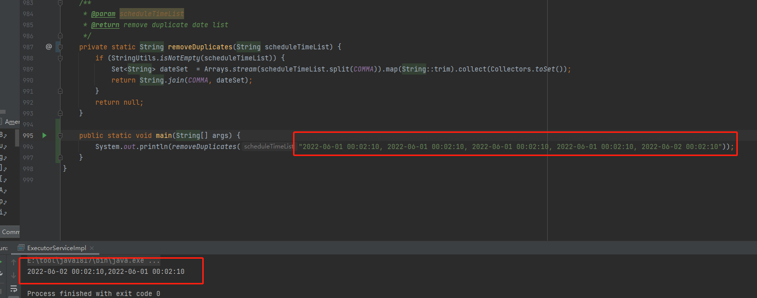 > > > So this PR will use array list to replace the old hash set logic, then the output will contains duplicates schedule time. > > > It's better to change the method name, since this method just trim the schedule time, there is no deduplicate logic. > >  There will be no duplicate. But you don't use hash set here <img width="768" alt="image" src="https://user-images.githubusercontent.com/22415594/178100443-f5472c9e-4abf-46a9-9858-4fc41b984d17.png"> -- This is an automated message from the Apache Git Service. To respond to the message, please log on to GitHub and use the URL above to go to the specific comment. To unsubscribe, e-mail: [email protected] For queries about this service, please contact Infrastructure at: [email protected]