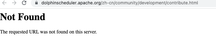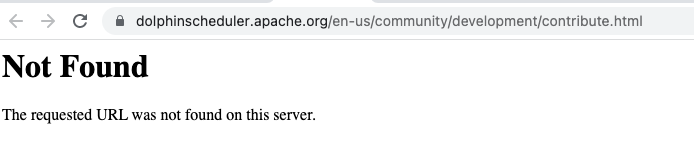 ### Search before asking - [X] I had searched in the [issues](https://github.com/apache/dolphinscheduler/issues?q=is%3Aissue) and found no similar feature requirement. ### Description [Contributing Guides](https://dolphinscheduler.apache.org/en-us/community/development/contribute.html) is not found  And chinese documentation, [贡献者指南](https://dolphinscheduler.apache.org/zh-cn/community/development/contribute.html) is also not found  ### Documentation Links _No response_ ### Are you willing to submit a PR? - [ ] Yes I am willing to submit a PR! ### Code of Conduct - [X] I agree to follow this project's [Code of Conduct](https://www.apache.org/foundation/policies/conduct) -- This is an automated message from the Apache Git Service. To respond to the message, please log on to GitHub and use the URL above to go to the specific comment. To unsubscribe, e-mail: [email protected] For queries about this service, please contact Infrastructure at: [email protected]