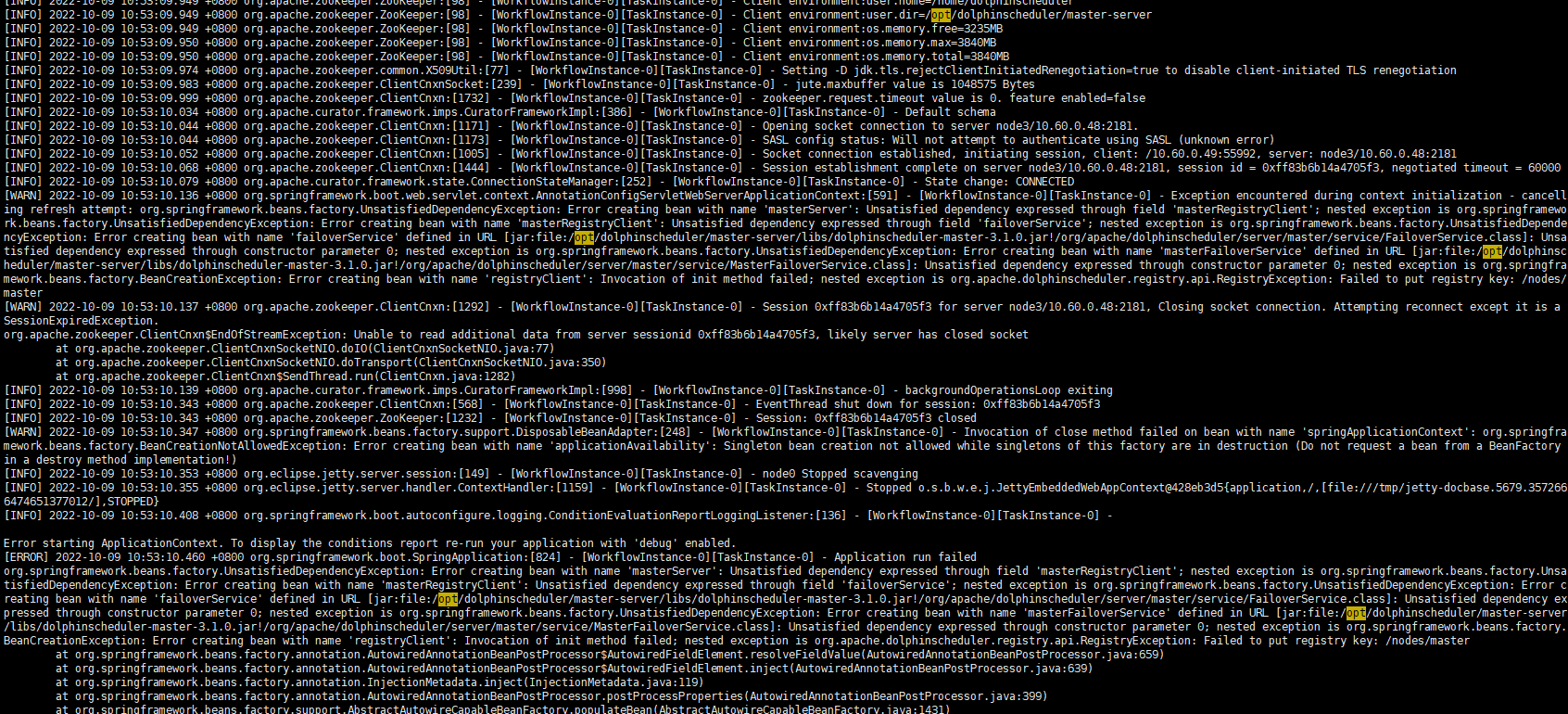 ### Search before asking - [X] I had searched in the [issues](https://github.com/apache/dolphinscheduler/issues?q=is%3Aissue) and found no similar issues. ### What happened Our cluster is CDH, and the zk version is 3.4.5. We plan to upgrade the DS2.0.6 version to version 3.1.0, but it shows that the registration cannot be done. It may be that the zk version does not match. What is the zk version required in 3.1.0? The following is the error message:  ![Uploading 2.png…]() ### What you expected to happen How can I upgrade from 2.0.6 to 3.1.0? ### How to reproduce no ### Anything else no ### Version 2.0.x ### Are you willing to submit PR? - [ ] Yes I am willing to submit a PR! ### Code of Conduct - [X] I agree to follow this project's [Code of Conduct](https://www.apache.org/foundation/policies/conduct) -- This is an automated message from the Apache Git Service. To respond to the message, please log on to GitHub and use the URL above to go to the specific comment. To unsubscribe, e-mail: [email protected] For queries about this service, please contact Infrastructure at: [email protected]