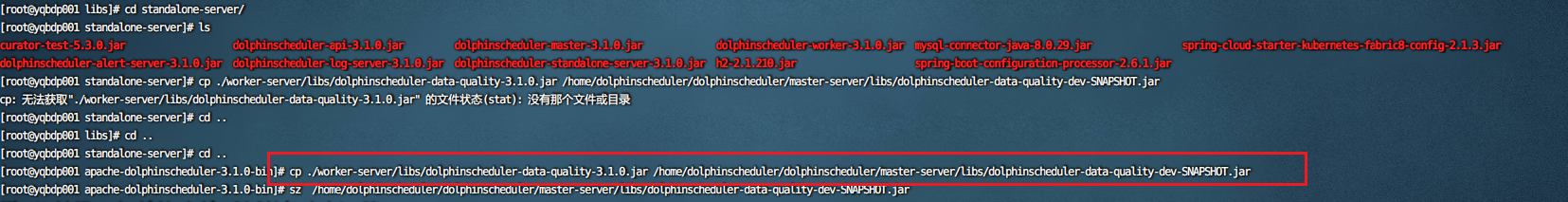 > > > > > There are still some serious problems, > > such as hdfs namenode addresss, the default value is mycluser:8020, and cannot modified。 > > Another problem, the jars dependencies, are not packaged in the data quality jar > > There are still some serious problems, such as hdfs namenode addresss, the default value is mycluser:8020, and cannot modified。 Another problem, the jars dependencies, are not packaged in the data quality jar the jars you should modify the config , refer https://dolphinscheduler.apache.org/zh-cn/docs/latest/user_doc/guide/data-quality.html. <server-name>/conf/common.properties data-quality.jar.name=dolphinscheduler-data-quality-dev-SNAPSHOT.jar  make sure your path in libs has this name's jar  at the end , you will get this.  -- This is an automated message from the Apache Git Service. To respond to the message, please log on to GitHub and use the URL above to go to the specific comment. To unsubscribe, e-mail: [email protected] For queries about this service, please contact Infrastructure at: [email protected]