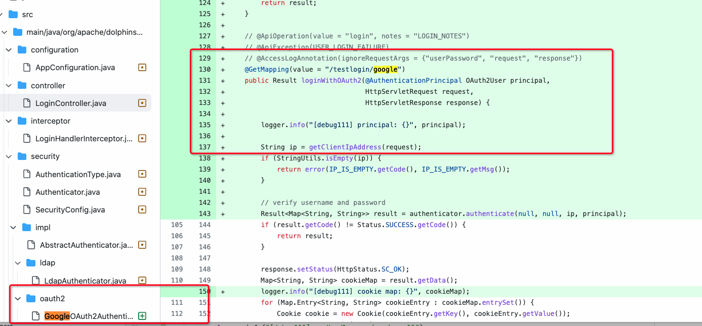 > Hello, I'm trying to add a new authenticator for DS to support OAuth2.0. Currently I'm blocked by some kind of cookie missing issue. After calling `http://localhost:12345/dolphinscheduler/testlogin/google`, I get successfully redirected to google login page and completedthe OAuth process. I could see the `sessionId` in browser.  However, if I try to visit `http://localhost:12345/dolphinscheduler/ui/projects`, the `sessionId` is missing and I get blocked by `LoginHandlerInterceptor`. I'm wondering whether it is caused by the wrong path or some other stuff related to cookie since I haven't implemented the front-end part of `/testlogin/google` > > So I have two questions: > > 1. Am I supposed to handle the cookie path in front-end part so that the cookie added by back-end could be sent to /ui/**? > 2. Since Spring Boot has its default interceptor for OAuth2.0, should I disabled `ds LoginHandlerInterceptor` when using OAuth2.0? > > https://github.com/apache/dolphinscheduler/blob/53340fc07b1e7b6d5f76aeb015fc36eb661e4a32/dolphinscheduler-ui/src/views/login/index.tsx#L35-L52 > > Related information: > > After authentication, ds will put `sessionId` into cookies and check the `sessionId` in `preHandle` method of `LoginHandlerInterceptor`, as shown below: > > https://github.com/apache/dolphinscheduler/blob/53340fc07b1e7b6d5f76aeb015fc36eb661e4a32/dolphinscheduler-api/src/main/java/org/apache/dolphinscheduler/api/security/impl/AbstractAuthenticator.java#L82-L100 > > https://github.com/apache/dolphinscheduler/blob/53340fc07b1e7b6d5f76aeb015fc36eb661e4a32/dolphinscheduler-api/src/main/java/org/apache/dolphinscheduler/api/interceptor/LoginHandlerInterceptor.java#L69-L74 > > As we could see in `LoginController`, the url for login is `/login` and will be mapped to `/ui/login` > > https://github.com/apache/dolphinscheduler/blob/53340fc07b1e7b6d5f76aeb015fc36eb661e4a32/dolphinscheduler-api/src/main/java/org/apache/dolphinscheduler/api/controller/LoginController.java#L83 > > But in my test code, I added a new url for login which is `/testlogin/google` without front-end. And it could not be mapped to `/ui/testlogin/google`.  > > @kezhenxu94 @devosend Could u plz help take a look when available? Thanks! Questions solved, thanks for the help : ) -- This is an automated message from the Apache Git Service. To respond to the message, please log on to GitHub and use the URL above to go to the specific comment. To unsubscribe, e-mail: [email protected] For queries about this service, please contact Infrastructure at: [email protected]