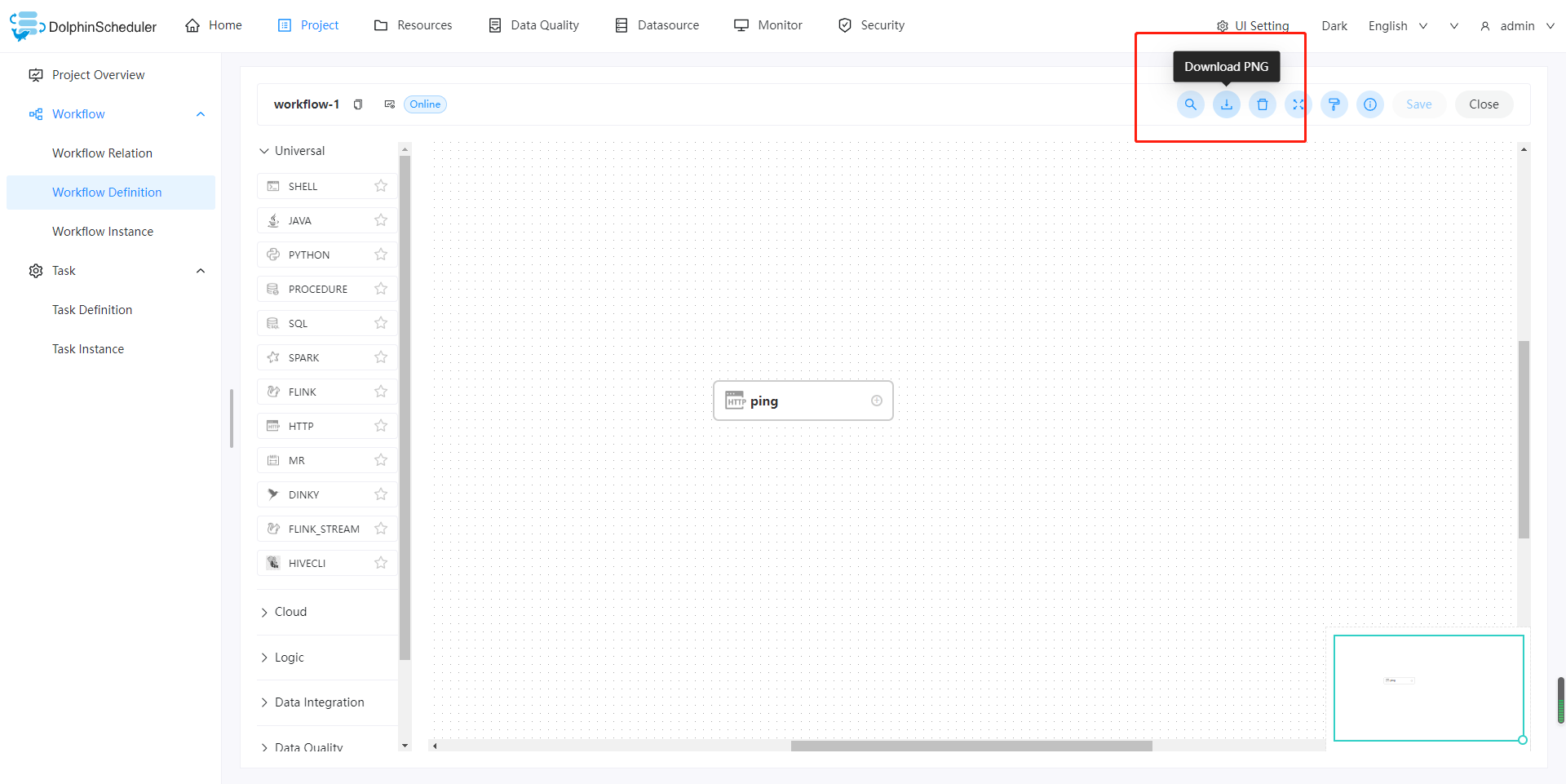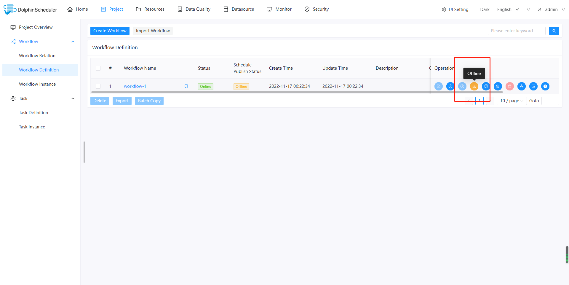 It seems that this function has not been added yet, and I found that the download workflow picture button on the workflow definition page and the offline button on the workflow list page use the same icon, whether it needs to be adjusted, I'd be willing to commit a pr to close this issue   -- This is an automated message from the Apache Git Service. To respond to the message, please log on to GitHub and use the URL above to go to the specific comment. To unsubscribe, e-mail: [email protected] For queries about this service, please contact Infrastructure at: [email protected]