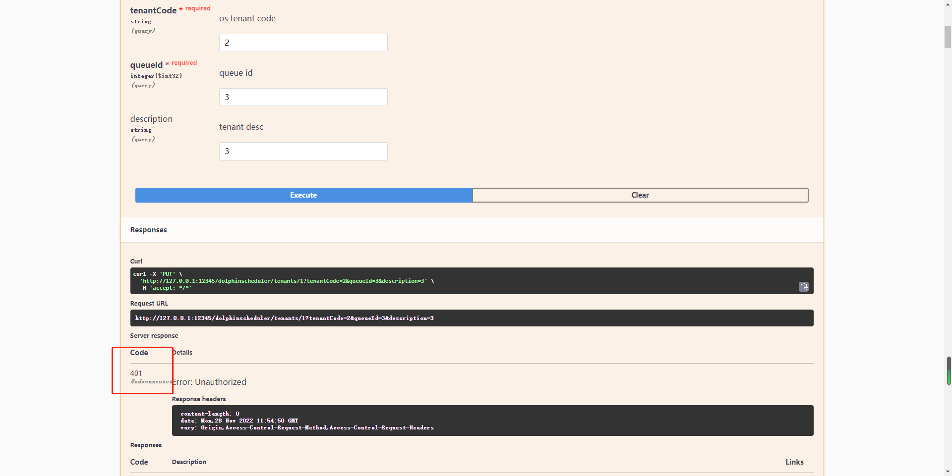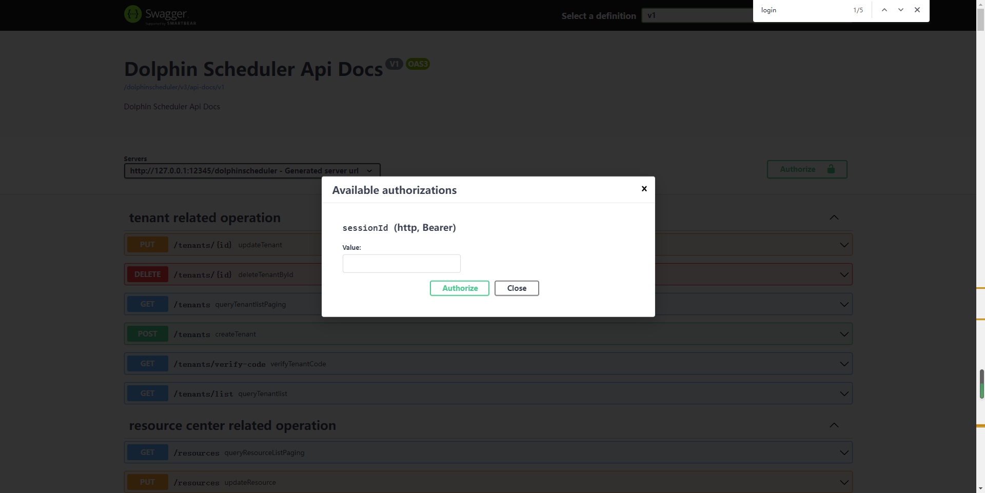 <!--Thanks very much for contributing to Apache DolphinScheduler. Please review https://dolphinscheduler.apache.org/en-us/community/development/pull-request.html before opening a pull request.--> ## Purpose of the pull request close #12975 make api-server swagger doc can set authorizition beforeļ¼  after: can set a session id to authorizition   <!--(For example: This pull request adds checkstyle plugin).--> ## Brief change log <!--*(for example:)* - *Add maven-checkstyle-plugin to root pom.xml* --> make api-server swagger doc can set Authorizition ## Verify this pull request <!--*(Please pick either of the following options)*--> This pull request is code cleanup without any test coverage. *(or)* This pull request is already covered by existing tests, such as *(please describe tests)*. (or) This change added tests and can be verified as follows: <!--*(example:)* - *Added dolphinscheduler-dao tests for end-to-end.* - *Added CronUtilsTest to verify the change.* - *Manually verified the change by testing locally.* --> (or) If your pull request contain incompatible change, you should also add it to `docs/docs/en/guide/upgrede/incompatible.md` -- This is an automated message from the Apache Git Service. To respond to the message, please log on to GitHub and use the URL above to go to the specific comment. To unsubscribe, e-mail: [email protected] For queries about this service, please contact Infrastructure at: [email protected]