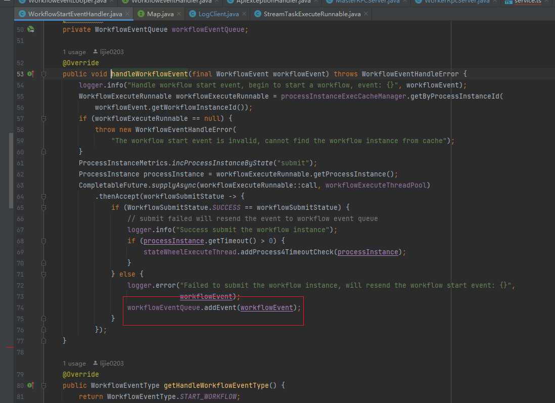 ### Search before asking - [X] I had searched in the [issues](https://github.com/apache/dolphinscheduler/issues?q=is%3Aissue) and found no similar feature requirement. ### Description version :3.1.2 When I delete the resources of a Spark task and start it, the log will frequently swipe the screen.The main logs are as follows  When I read the code, I found that when processing the WorkflowEvent of the workflowEventQueue, if the WorkflowEvent fails, it will rejoin the workflowEventQueue and execute again. But it is a while loop, so it will retry indefinitely. So I suggest that when a WorkflowEvent fails several times, it is not necessary to put it into the workflowEventQueue, or put the failed WorkflowEvent into another workflowEventQueue for special processing.   ### Are you willing to submit a PR? - [X] Yes I am willing to submit a PR! ### Code of Conduct - [X] I agree to follow this project's [Code of Conduct](https://www.apache.org/foundation/policies/conduct) -- This is an automated message from the Apache Git Service. To respond to the message, please log on to GitHub and use the URL above to go to the specific comment. To unsubscribe, e-mail: [email protected] For queries about this service, please contact Infrastructure at: [email protected]