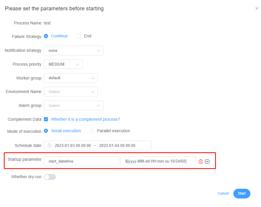 ### Search before asking - [X] I had searched in the [issues](https://github.com/apache/dolphinscheduler/issues?q=is%3Aissue) and found no similar issues. ### What happened An error will occur, that is "org.apache.dolphinscheduler.server.master.runner.MasterSchedulerService:[226] - scan command error java.lang.IllegalArgumentException: The date must not be null" when complement data with startup parameter.  ### What you expected to happen launch complement data with startup parameter is as shown below:  ### How to reproduce 1,Create process definition and set global parameters,as shown below:   2,Start complement data ,as shown below:  3,An error will occur, that is "org.apache.dolphinscheduler.server.master.runner.MasterSchedulerService:[226] - scan command error java.lang.IllegalArgumentException: The date must not be null" when complement data with startup parameter. ### Anything else _No response_ ### Version 2.0.x ### Are you willing to submit PR? - [ ] Yes I am willing to submit a PR! ### Code of Conduct - [X] I agree to follow this project's [Code of Conduct](https://www.apache.org/foundation/policies/conduct) -- This is an automated message from the Apache Git Service. To respond to the message, please log on to GitHub and use the URL above to go to the specific comment. To unsubscribe, e-mail: [email protected] For queries about this service, please contact Infrastructure at: [email protected]