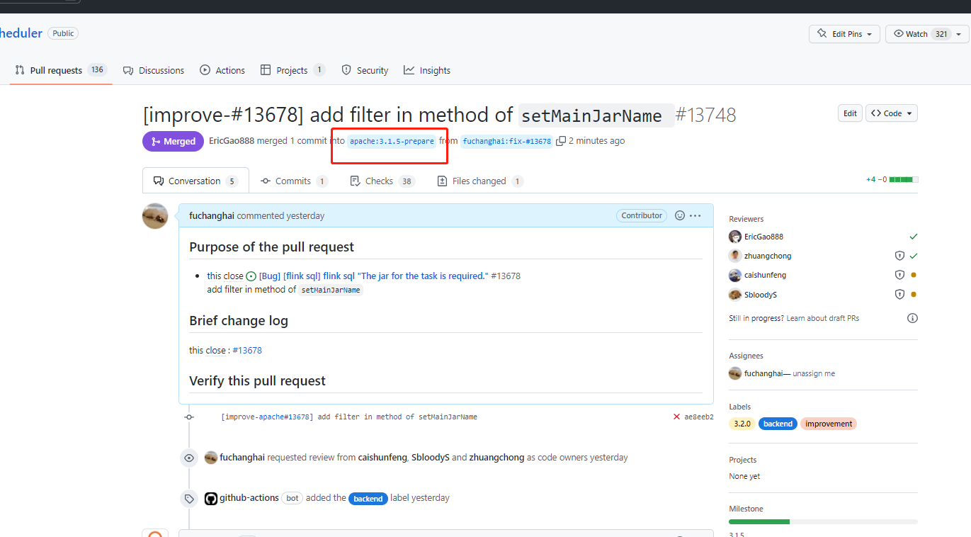 > > @fuchanghai Have u submitted a PR to dev branch? > > Hi, @EricGao888, i think it's unnecessary to submit to dev, ref [#13678 (comment)](https://github.com/apache/dolphinscheduler/issues/13678#issuecomment-1457546588), WDYT? this branch copy from 3.1.5  -- This is an automated message from the Apache Git Service. To respond to the message, please log on to GitHub and use the URL above to go to the specific comment. To unsubscribe, e-mail: [email protected] For queries about this service, please contact Infrastructure at: [email protected]