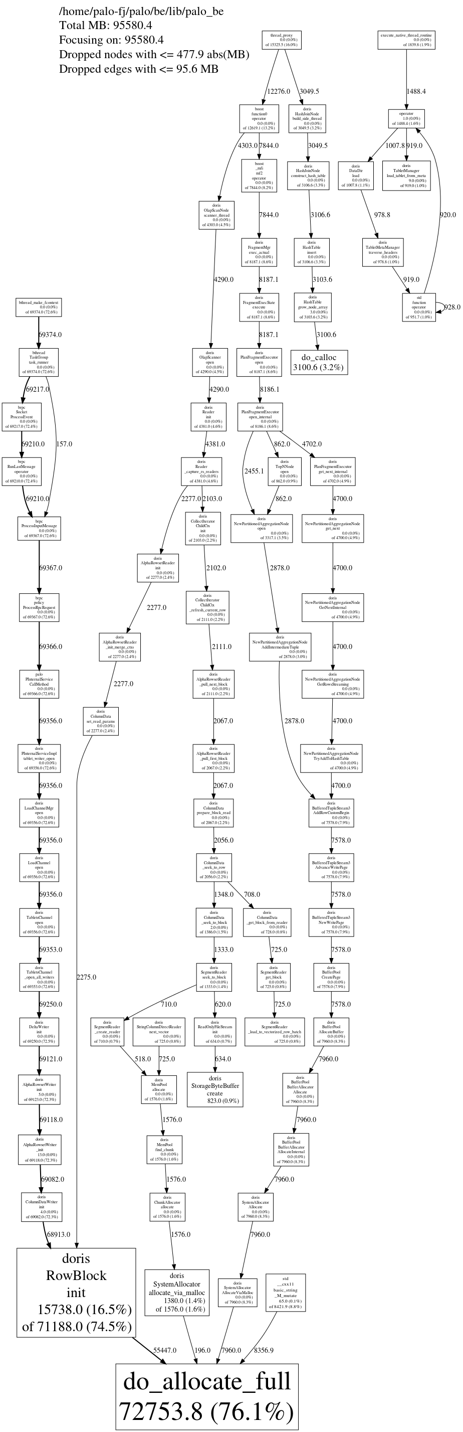 imay opened a new issue #2462: There may be memory leak when loading URL: https://github.com/apache/incubator-doris/issues/2462 **Describe the bug** There may be memory leak when loading. I see one of our cluster, the memory of backend reached 89GB. Below is profile/growth and metrics  <img width="650" alt="图片" src="https://user-images.githubusercontent.com/1249159/70879696-53ba5d00-2001-11ea-9b92-d030960ca9a3.png">