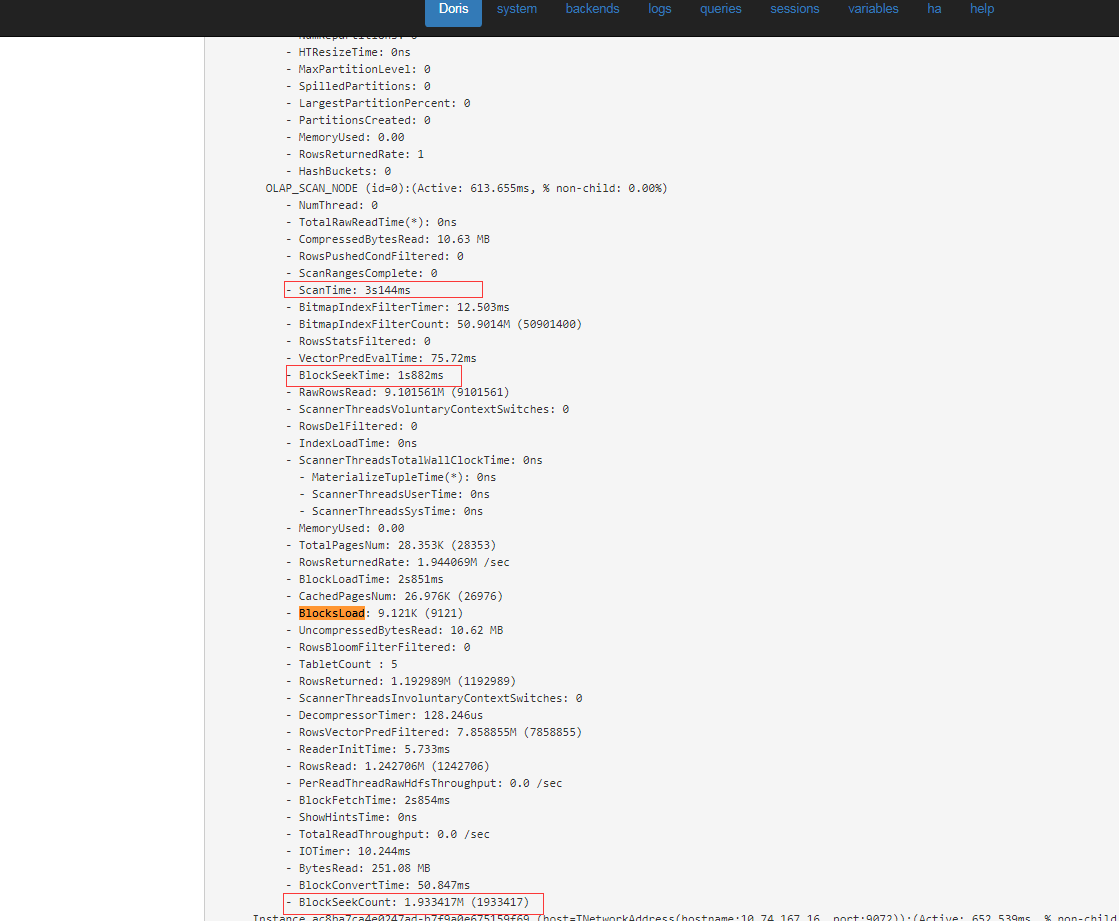 kangpinghuang opened a new issue #3014: [segment v2] too many seek will bring performance degradation URL: https://github.com/apache/incubator-doris/issues/3014 when I test ssb test with sf20 in segment v2 with bitmap. I create the table by using: CREATE TABLE `topic_lineorder` ( `lo_orderkey` bigint(20) NULL COMMENT "", `lo_linenumber` bigint(20) NULL COMMENT "", `lo_custkey` int(11) NULL COMMENT "", `c_custkey` int(11) NULL COMMENT "", `c_name` varchar(25) NULL COMMENT "", `c_address` varchar(40) NULL COMMENT "", `c_city` varchar(10) NULL COMMENT "", `c_nation` varchar(15) NULL COMMENT "", `c_region` varchar(12) NULL COMMENT "", `c_phone` varchar(15) NULL COMMENT "", `c_mktsegment` varchar(10) NULL COMMENT "", `lo_partkey` int(11) NULL COMMENT "", `p_name` varchar(22) NULL COMMENT "", `p_mfgr` varchar(6) NULL COMMENT "", `p_category` varchar(7) NULL COMMENT "", `p_brand` varchar(9) NULL COMMENT "", `p_color` varchar(11) NULL COMMENT "", `p_type` varchar(25) NULL COMMENT "", `p_size` int(11) NULL COMMENT "", `p_container` varchar(10) NULL COMMENT "", `lo_suppkey` int(11) NULL COMMENT "", `s_name` varchar(25) NULL COMMENT "", `s_address` varchar(25) NULL COMMENT "", `s_city` varchar(10) NULL COMMENT "", `s_nation` varchar(15) NULL COMMENT "", `s_region` varchar(12) NULL COMMENT "", `s_phone` varchar(15) NULL COMMENT "", `lo_orderdate` int(11) NULL COMMENT "", `d_date` varchar(19) NULL COMMENT "", `d_dayofweek` varchar(9) NULL COMMENT "", `d_month` varchar(10) NULL COMMENT "", `d_year` int(11) NULL COMMENT "", `d_yearmonthnum` int(11) NULL COMMENT "", `d_yearmonth` varchar(8) NULL COMMENT "", `d_daynuminweek` int(11) NULL COMMENT "", `d_daynuminmonth` int(11) NULL COMMENT "", `d_daynuminyear` int(11) NULL COMMENT "", `d_monthnuminyear` int(11) NULL COMMENT "", `d_weeknuminyear` int(11) NULL COMMENT "", `lo_orderpriotity` varchar(15) NULL COMMENT "", `lo_shippriotity` int(11) NULL COMMENT "", `lo_quantity` bigint(20) NULL COMMENT "", `lo_extendedprice` bigint(20) NULL COMMENT "", `lo_ordtotalprice` bigint(20) NULL COMMENT "", `lo_discount` bigint(20) NULL COMMENT "", `lo_revenue` bigint(20) NULL COMMENT "", `lo_supplycost` bigint(20) NULL COMMENT "", `lo_tax` bigint(20) NULL COMMENT "", `lo_commitdate` int(11) NULL COMMENT "", `lo_shipmode` varchar(10) NULL COMMENT "", INDEX lo_orderkey_idx (`lo_orderkey`) USING BITMAP COMMENT '', INDEX lo_linenumber_idx (`lo_linenumber`) USING BITMAP COMMENT '', INDEX lo_custkey_idx (`lo_custkey`) USING BITMAP COMMENT '', INDEX lo_partkey_idx (`lo_partkey`) USING BITMAP COMMENT '', INDEX lo_suppkey_idx (`lo_suppkey`) USING BITMAP COMMENT '', INDEX lo_orderdate_idx (`lo_orderdate`) USING BITMAP COMMENT '', INDEX c_custkey_idx (`c_custkey`) USING BITMAP COMMENT '', INDEX c_name_idx (`c_name`) USING BITMAP COMMENT '', INDEX c_address_idx (`c_address`) USING BITMAP COMMENT '', INDEX c_city_idx (`c_city`) USING BITMAP COMMENT '', INDEX c_nation_idx (`c_nation`) USING BITMAP COMMENT '', INDEX c_region_idx (`c_region`) USING BITMAP COMMENT '', INDEX c_phone_idx (`c_phone`) USING BITMAP COMMENT '', INDEX c_mktsegment_idx (`c_mktsegment`) USING BITMAP COMMENT '', INDEX p_name_idx (`p_name`) USING BITMAP COMMENT '', INDEX p_mfgr_idx (`p_mfgr`) USING BITMAP COMMENT '', INDEX p_category_idx (`p_category`) USING BITMAP COMMENT '', INDEX p_brand_idx (`p_brand`) USING BITMAP COMMENT '', INDEX p_color_idx (`p_color`) USING BITMAP COMMENT '', INDEX p_type_idx (`p_type`) USING BITMAP COMMENT '', INDEX p_size_idx (`p_size`) USING BITMAP COMMENT '', INDEX p_container_idx (`p_container`) USING BITMAP COMMENT '', INDEX s_name_idx (`s_name`) USING BITMAP COMMENT '', INDEX s_address_idx (`s_address`) USING BITMAP COMMENT '', INDEX s_city_idx (`s_city`) USING BITMAP COMMENT '', INDEX s_nation_idx (`s_nation`) USING BITMAP COMMENT '', INDEX s_region_idx (`s_region`) USING BITMAP COMMENT '', INDEX s_phone_idx (`s_phone`) USING BITMAP COMMENT '', INDEX d_date_idx (`d_date`) USING BITMAP COMMENT '', INDEX d_dayofweek_idx (`d_dayofweek`) USING BITMAP COMMENT '', INDEX d_month_idx (`d_month`) USING BITMAP COMMENT '', INDEX d_year_idx (`d_year`) USING BITMAP COMMENT '', INDEX d_yearmonthnum_idx (`d_yearmonthnum`) USING BITMAP COMMENT '', INDEX d_yearmonth_idx (`d_yearmonth`) USING BITMAP COMMENT '', INDEX d_daynuminweek_idx (`d_daynuminweek`) USING BITMAP COMMENT '', INDEX d_daynuminmonth_idx (`d_daynuminmonth`) USING BITMAP COMMENT '', INDEX d_daynuminyear_idx (`d_daynuminyear`) USING BITMAP COMMENT '', INDEX d_monthnuminyear_idx (`d_monthnuminyear`) USING BITMAP COMMENT '', INDEX d_weeknuminyear_idx (`d_weeknuminyear`) USING BITMAP COMMENT '', INDEX lo_orderpriotity_idx (`lo_orderpriotity`) USING BITMAP COMMENT '', INDEX lo_shippriotity_idx (`lo_shippriotity`) USING BITMAP COMMENT '', INDEX lo_commitdate_idx (`lo_commitdate`) USING BITMAP COMMENT '', INDEX lo_shipmode_idx (`lo_shipmode`) USING BITMAP COMMENT '' ) ENGINE=OLAP DUPLICATE KEY(`lo_orderkey`, `lo_linenumber`, `lo_custkey`, `c_custkey`) COMMENT "OLAP" DISTRIBUTED BY HASH(`lo_orderkey`) BUCKETS 10 PROPERTIES ( "storage_type" = "COLUMN", "replication_num" = "1" ); create 10 tablet. for Q1-1, a got an equal time cost compared to query against table without bitmap index. profile with bitmap:  profile without bitmap: