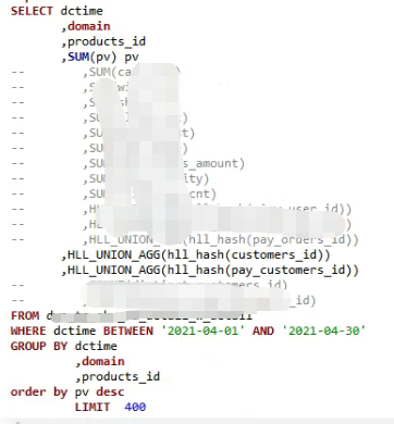 完全命中rollup,还要走本地agg(处理和返回条数相同,还要6s啊),hash后再次agg,这样的执行逻辑合理吗?... ------------------------------------------------------------------------------------------------------------------------ ----------------------------------------------------------------------------------------- CREATE TABLE dw.dwa_tg_sku_1d_detail_w_detail( `dctime` date, `domain` int, `products_id` bigint, `sku` varchar(500), `site_port` varchar(255), `site` varchar(255), `country_code` varchar(255), `resource_group` varchar(255), `utm_source` varchar(255), `utm_medium` varchar(800), `utm_campaign` varchar(800), `utm_content` varchar(255), `utm_ho` varchar(255), `site_keywords` varchar(255), `zone` varchar(255), `country_name_cn` varchar(255), `lang_area_en` varchar(255), `categories_id` bigint, `brand_director_name` varchar(255), `px_id` bigint, `px_name` varchar(255), `brand_id` bigint, `brand_name` varchar(255), `oa_ms_id` bigint, `oa_ms_name` varchar(255), `sj_id` bigint, `sj_name` varchar(255), `oa_kf_id` bigint, `oa_kf_name` varchar(255), `oa_bj_id` bigint, `oa_bj_name` varchar(255), `shooted_userid` bigint, `shooted_username` varchar(255), `pv` bigint, `cart_cnt` bigint, `wish_cnt` bigint, `show_cnt` bigint, `click_cnt` bigint, `bounce_cnt` bigint, `stay_time` bigint, `view_user_id` bigint, `view_sess_id` bigint, `pay_orders_id` bigint, `pay_orders_amount` decimal(15,4), `pay_quantity` int, `customers_id` bigint, `pay_customers_id` bigint, `click_pay_cnt` bigint, `create_time` varchar(255), `record_cnt` int ) ENGINE=olap DUPLICATE KEY( dctime, domain, products_id ) PARTITION BY RANGE (`dctime`) ( PARTITION p20210401 VALUES LESS THAN ("20210402"), PARTITION p20210402 VALUES LESS THAN ("20210403"), PARTITION p20210403 VALUES LESS THAN ("20210404"), PARTITION p20210404 VALUES LESS THAN ("20210405"), PARTITION p20210405 VALUES LESS THAN ("20210406"), PARTITION p20210406 VALUES LESS THAN ("20210407"), PARTITION p20210407 VALUES LESS THAN ("20210408"), PARTITION p20210408 VALUES LESS THAN ("20210409"), PARTITION p20210409 VALUES LESS THAN ("20210410"), PARTITION p20210410 VALUES LESS THAN ("20210411"), PARTITION p20210411 VALUES LESS THAN ("20210412"), PARTITION p20210412 VALUES LESS THAN ("20210413"), PARTITION p20210413 VALUES LESS THAN ("20210414"), PARTITION p20210414 VALUES LESS THAN ("20210415"), PARTITION p20210415 VALUES LESS THAN ("20210416"), PARTITION p20210416 VALUES LESS THAN ("20210417"), PARTITION p20210417 VALUES LESS THAN ("20210418"), PARTITION p20210418 VALUES LESS THAN ("20210419"), PARTITION p20210419 VALUES LESS THAN ("20210420"), PARTITION p20210420 VALUES LESS THAN ("20210421"), PARTITION p20210421 VALUES LESS THAN ("20210422"), PARTITION p20210422 VALUES LESS THAN ("20210423"), PARTITION p20210423 VALUES LESS THAN ("20210424"), PARTITION p20210424 VALUES LESS THAN ("20210425"), PARTITION p20210425 VALUES LESS THAN ("20210426"), PARTITION p20210426 VALUES LESS THAN ("20210427"), PARTITION p20210427 VALUES LESS THAN ("20210428"), PARTITION p20210428 VALUES LESS THAN ("20210429"), PARTITION p20210429 VALUES LESS THAN ("20210430"), ) DISTRIBUTED BY HASH (products_id) PROPERTIES ( "replication_num" = "2", "dynamic_partition.enable" = "true", "dynamic_partition.time_unit" = "DAY", "dynamic_partition.end" = "3", "dynamic_partition.prefix" = "p", "dynamic_partition.buckets" = "6" ); ------------------------------------------------------------------------------------------------------------------------ Query: Summary: - Query ID: 92034a1aa98e4542-9cec2851a56f43ff - Start Time: 2021-05-15 03:00:48 - End Time: 2021-05-15 03:01:02 - Total: 14s646ms - Query Type: Query - Query State: EOF - Doris Version: 0.14.7 - User: admin - Default Db: - Sql Statement: /* ApplicationName=DBeaver 7.3.4 - SQLEditor */ -- explain SELECT dctime ,domain ,products_id ,sum(pv) pv -- 711ms ,bitmap_union_count(customers_id) customer_cnt -- 1.8s ,bitmap_union_count(pay_customers_id) pay_customers_cnt -- 1.9s FROM dw.dwa_tg_sku_1d_detail_w -- 28.9s -- FROM test.dwa_tg_sku_1d_detail_w_without WHERE dctime BETWEEN '2021-04-01' AND '2021-04-30' GROUP BY dctime ,domain ,products_id order by pv desc LIMIT 0, 200 - Is Cached: No Execution Summary: - Analysis Time: 487.951us - Plan Time: 960.488us - Schedule Time: 4.973ms - Wait and Fetch Result Time: 14s639ms Execution Profile 92034a1aa98e4542-9cec2851a56f43ff:(Active: 14s645ms, % non-child: 100.00%) Fragment 0: Instance 92034a1aa98e4542-9cec2851a56f4406 (host=TNetworkAddress(hostname:172.29.1.148, port:9060)):(Active: 14s642ms, % non-child: 0.00%) - AverageThreadTokens: 4607182418800017400.00 - FragmentCpuTime: 677.507us - MemoryLimit: 2.00 GB - PeakMemoryUsage: 63.13 KB - PeakReservation: 0.00 - PeakUsedReservation: 0.00 - RowsProduced: 200 BlockMgr: - BlockWritesOutstanding: 0 - BlocksCreated: 0 - BlocksRecycled: 0 - BufferedPins: 0 - BytesWritten: 0.00 - MaxBlockSize: 8.00 MB - TotalBufferWaitTime: 0ns - TotalEncryptionTime: 0ns - TotalIntegrityCheckTime: 0ns - TotalReadBlockTime: 0ns DataBufferSender (dst_fragment_instance_id=92034a1aa98e4542-9cec2851a56f4406): - AppendBatchTime: 522.44us - ResultRendTime: 75.47us - TupleConvertTime: 250.662us - NumSentRows: 200 EXCHANGE_NODE (id=5):(Active: 14s642ms, % non-child: 99.97%) - BytesReceived: 8.41 KB - ConvertRowBatchTime: 0ns - DataArrivalWaitTime: 14s642ms - DeserializeRowBatchTimer: 65.375us - FirstBatchArrivalWaitTime: 14s641ms - MergeGetNext: 318.536us - MergeGetNextBatch: 273.554us - PeakMemoryUsage: 55.13 KB - RowsReturned: 600 - RowsReturnedRate: 40 - SendersBlockedTotalTimer(*): 0ns Fragment 1: Instance 92034a1aa98e4542-9cec2851a56f4404 (host=TNetworkAddress(hostname:172.29.1.139, port:9060)):(Active: 14s640ms, % non-child: 0.00%) - AverageThreadTokens: 4607182418800017400.00 - FragmentCpuTime: 9s625ms - MemoryLimit: 2.00 GB - PeakMemoryUsage: 482.35 MB - PeakReservation: 482.00 MB - PeakUsedReservation: 0.00 - RowsProduced: 200 BlockMgr: - BlockWritesOutstanding: 0
