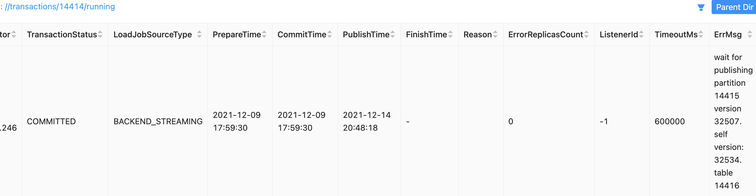 ### Search before asking - [X] I had searched in the [issues](https://github.com/apache/incubator-doris/issues?q=is%3Aissue) and found no similar issues. ### Version Git : git://37942ae4575f/root/incubator-doris@b067bdcdd54e22d70ef79e332816f182b3d5872a Version : trunk BuildInfo : root@37942ae4575f BuildTime : Fri, 06 Aug 2021 08:13:44 UTC ### What's Wrong?  **transactions that submited several days ago ,still running...** ### What You Expected? how to delete then from the running list ? ### How to Reproduce? _No response_ ### Anything Else? _No response_ ### Are you willing to submit PR? - [ ] Yes I am willing to submit a PR! ### Code of Conduct - [X] I agree to follow this project's [Code of Conduct](https://www.apache.org/foundation/policies/conduct) -- This is an automated message from the Apache Git Service. To respond to the message, please log on to GitHub and use the URL above to go to the specific comment. To unsubscribe, e-mail: [email protected] For queries about this service, please contact Infrastructure at: [email protected] --------------------------------------------------------------------- To unsubscribe, e-mail: [email protected] For additional commands, e-mail: [email protected]