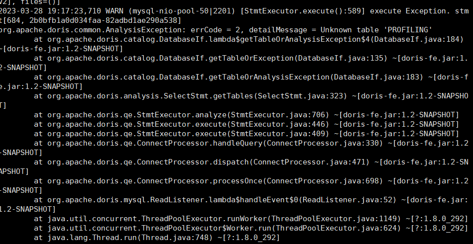 ### Search before asking - [X] I had searched in the [issues](https://github.com/apache/doris/issues?q=is%3Aissue) and found no similar issues. ### Version Doris version doris-1.2.3-rc02-Unknown ### What's Wrong? EXPORT TABLE xx TO "file:/xx" bug type:RUN_FAIL; msg:export exporting job fail. query id: c8a416f9215f4553-88b9ccd48f60d643, (192.168.1.101)[INTERNAL_ERROR]can't export this type. type = DATEV2 fe WARNING log:Unknown table 'PROFILING'  be WARNING log:  ### What You Expected? data can be exported ### How to Reproduce? CREATE DATEV2 TABLE ### Anything Else? _No response_ ### Are you willing to submit PR? - [ ] Yes I am willing to submit a PR! ### Code of Conduct - [X] I agree to follow this project's [Code of Conduct](https://www.apache.org/foundation/policies/conduct) -- This is an automated message from the Apache Git Service. To respond to the message, please log on to GitHub and use the URL above to go to the specific comment. To unsubscribe, e-mail: [email protected] For queries about this service, please contact Infrastructure at: [email protected] --------------------------------------------------------------------- To unsubscribe, e-mail: [email protected] For additional commands, e-mail: [email protected]