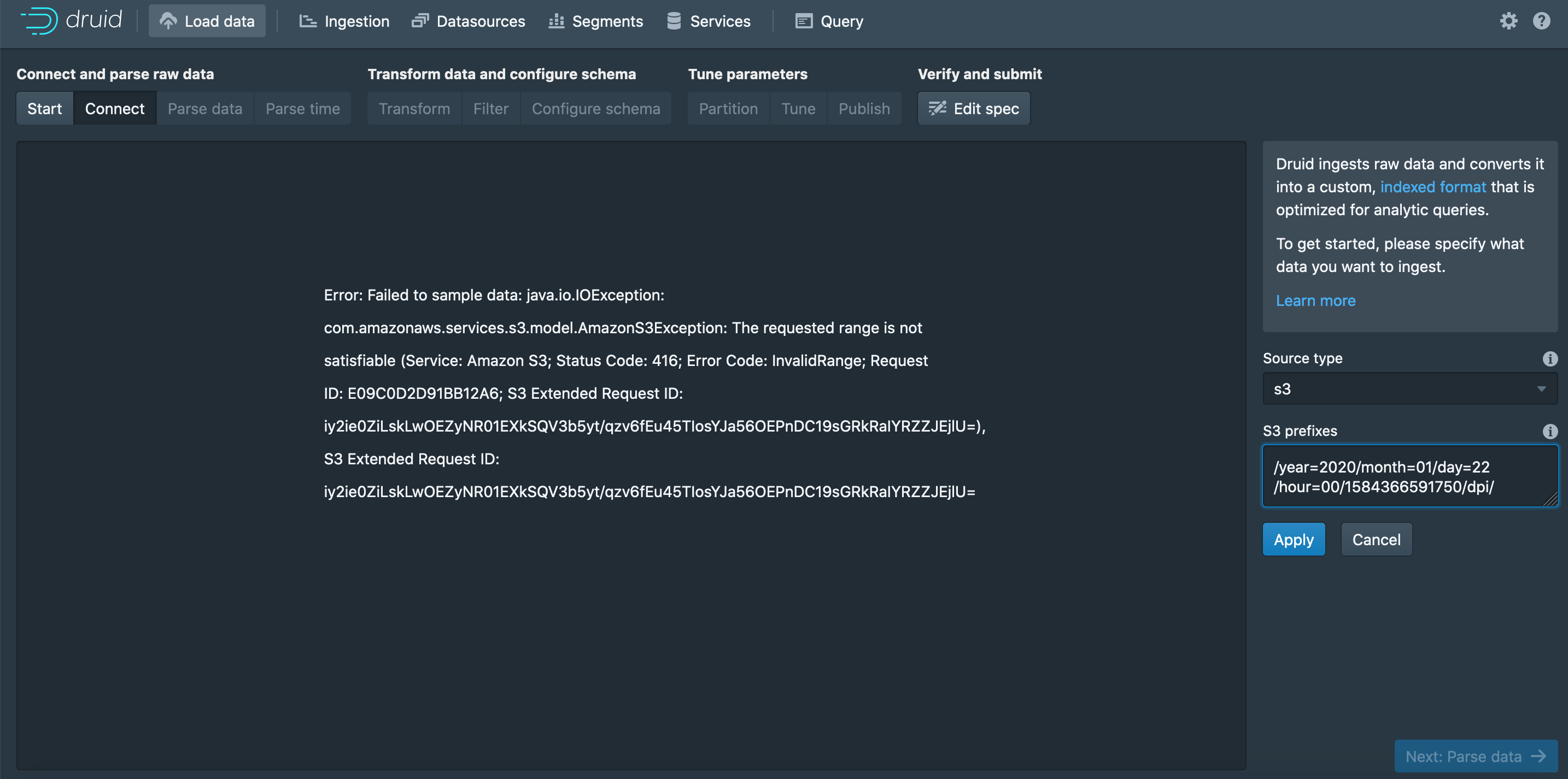vikramsinghchandel commented on issue #9411: S3 InputSource issue when using prefix mode if a directory contains _SUCCESS files URL: https://github.com/apache/druid/issues/9411#issuecomment-602703280 Hi @gianm any update with this? the _SUCCESS file is actually of zero size(0 B) and is created as a result of a Spark ETL job via EMR.