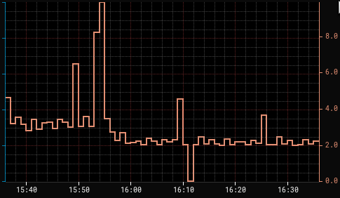 after a moment or two the CPU shifts down at a notably lower total utilization