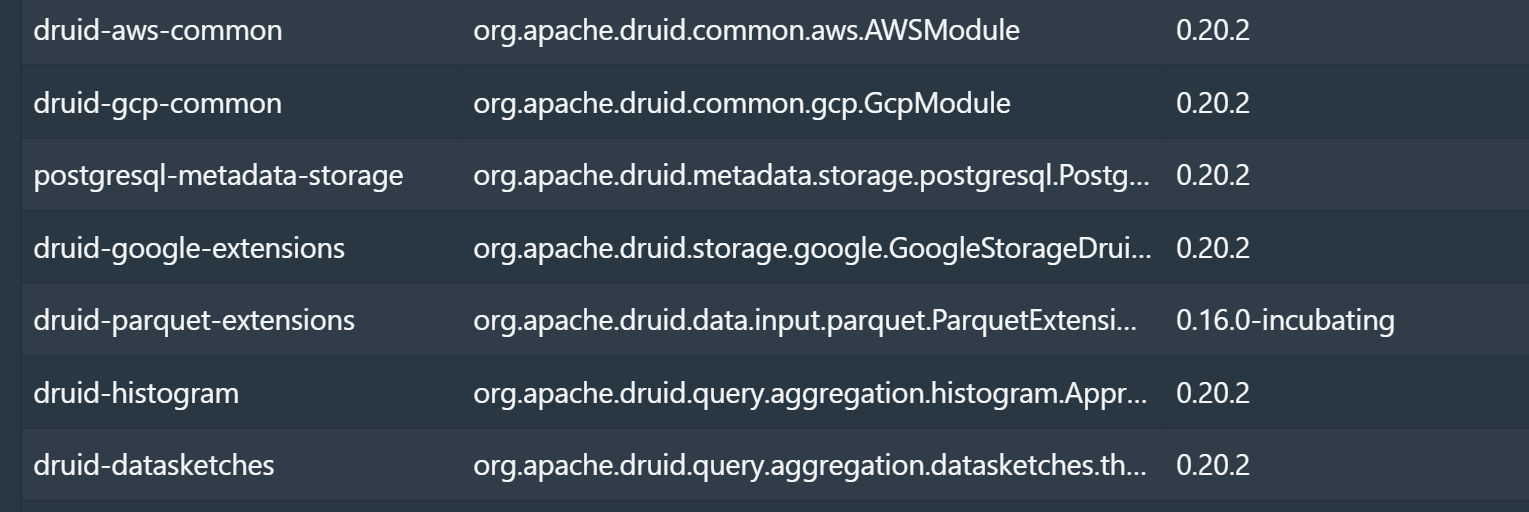 Hi @amittiwary-zeotap I did not really. My "workaround" was to use an older version. My Druid is also a bit older due to incompatibilities with Hadoop3. Maybe you can also try something like this  -- This is an automated message from the Apache Git Service. To respond to the message, please log on to GitHub and use the URL above to go to the specific comment. To unsubscribe, e-mail: [email protected] For queries about this service, please contact Infrastructure at: [email protected] --------------------------------------------------------------------- To unsubscribe, e-mail: [email protected] For additional commands, e-mail: [email protected]