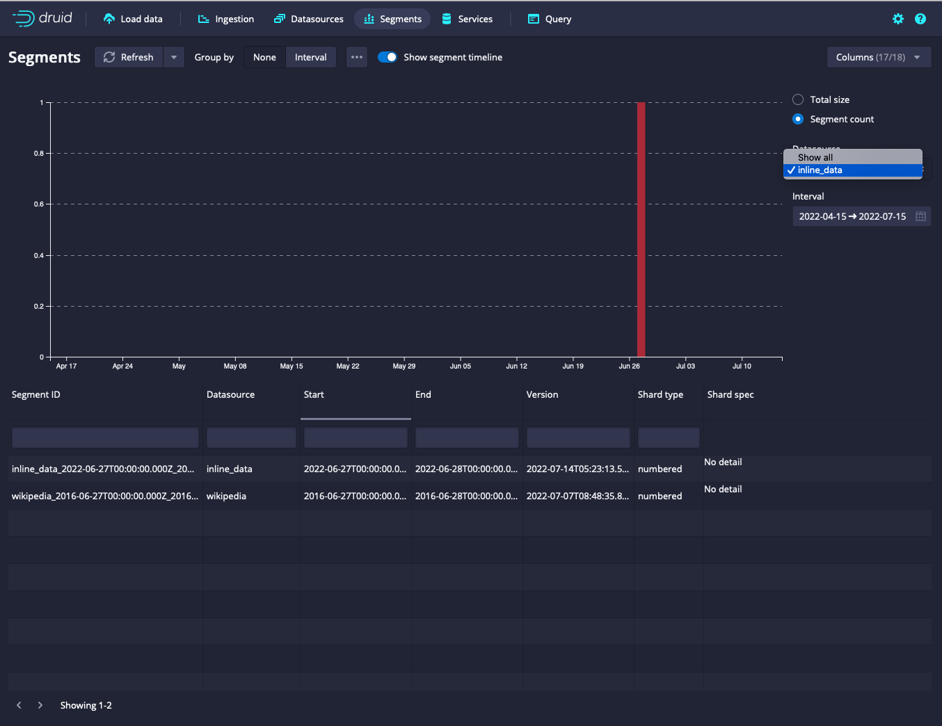 This is a bug found in 0.23.0 release. Steps to reproduce it 1. open `Segments` page and check `Show segment timeline` 2. choose `Segment count` and select one datasource 3. hover on bar chart   -- This is an automated message from the Apache Git Service. To respond to the message, please log on to GitHub and use the URL above to go to the specific comment. To unsubscribe, e-mail: [email protected] For queries about this service, please contact Infrastructure at: [email protected] --------------------------------------------------------------------- To unsubscribe, e-mail: [email protected] For additional commands, e-mail: [email protected]