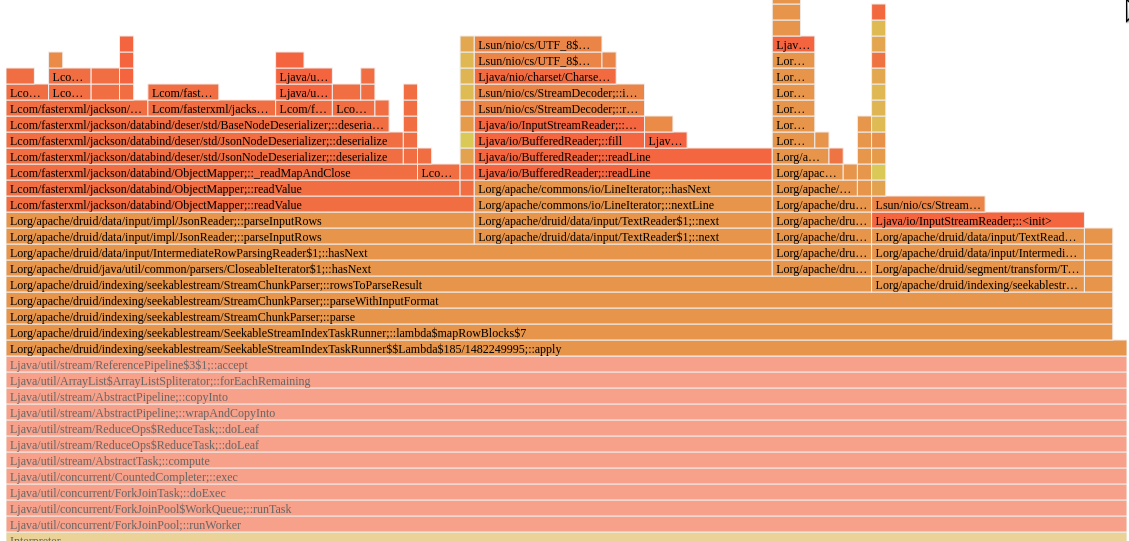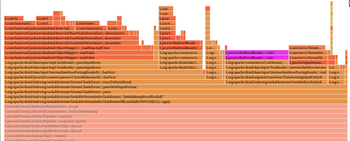 @abhishekagarwal87 -- as requested, some flamegraphs here that give a bit more detail. I've spun up a half-cluster to try to get a clean a/b overview between the nodes but that's a little more tricky. BEFORE 15.6% of Java CPU is in `TextReader`  AFTER 10.7% of Java CPU is in `TextReader`  ZOOMING IN - zooming in to one of the `StreamChunkParser` paths - highlighting `BufferedReader.*ini` - note that the reader init code disappears completely BEFORE  AFTER  -- This is an automated message from the Apache Git Service. To respond to the message, please log on to GitHub and use the URL above to go to the specific comment. To unsubscribe, e-mail: [email protected] For queries about this service, please contact Infrastructure at: [email protected] --------------------------------------------------------------------- To unsubscribe, e-mail: [email protected] For additional commands, e-mail: [email protected]