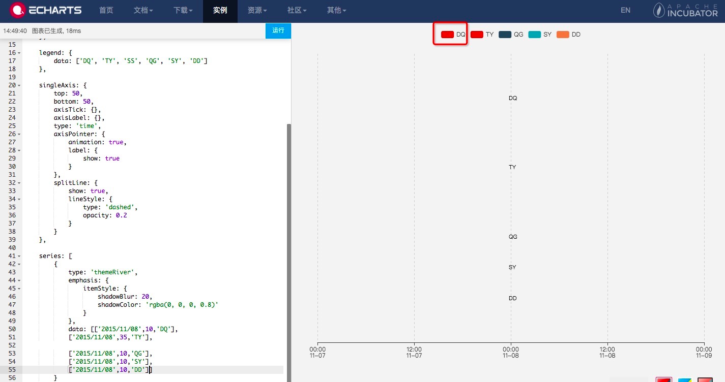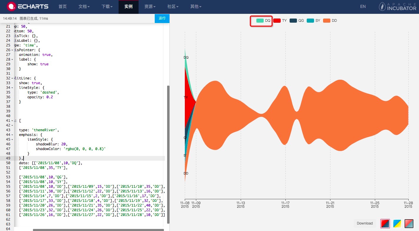 in this img , 'DD' still have data for For several days , and the color of legend is all right  and in this img , I delete DD's data of serveral days except 11/08 , and there is only-one point(11/08) on the X-axis . the color of legend changed , the first two legends overlaps in color. ---------------------------------------------------------------- This is an automated message from the Apache Git Service. To respond to the message, please log on to GitHub and use the URL above to go to the specific comment. For queries about this service, please contact Infrastructure at: [email protected] --------------------------------------------------------------------- To unsubscribe, e-mail: [email protected] For additional commands, e-mail: [email protected]