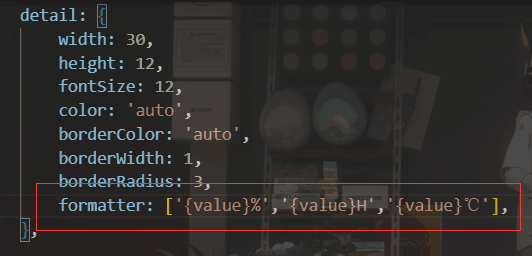 <!-- Please fill in the following information to help us review your PR more efficiently. --> ## Brief Information This pull request is in the type of: - [ ] bug fixing - [x] new feature - [ ] others ### What does this PR do? <!-- USE ONE SENTENCE TO DESCRIBE WHAT THIS PR DOES. --> Enrich the type of this Formatter so that it can support arrays. ### Fixed issues - #18021: [...](https://github.com/apache/echarts/issues/18021) ## Details ### Before: What was the problem? <!-- DESCRIBE THE BUG OR REQUIREMENT HERE. --> <!-- ADD SCREENSHOT HERE IF APPLICABLE. --> i've a gauge with two values https://echarts.apache.org/examples/en/editor.html?c=gauge-multi-title it would be nice if i'm able to add a suffix for both values with different units in the formatter. e.g. formatter: ["{value1} °C" , "{value2} H%"]  ### After: How does it behave after the fixing? <!-- THE RESULT AFTER FIXING AND A SIMPLE EXPLANATION ABOUT HOW IT IS FIXED. --> <!-- ADD SCREENSHOT HERE IF APPLICABLE. -->  ## Document Info One of the following should be checked. - [ ] This PR doesn't relate to document changes - [ ] The document should be updated later - [ ] The document changes have been made in apache/echarts-doc#xxx ## Misc ### ZRender Changes - [ ] This PR depends on ZRender changes (ecomfe/zrender#xxx). ### Related test cases or examples to use the new APIs N.A. ## Others ### Merging options - [ ] Please squash the commits into a single one when merging. ### Other information -- This is an automated message from the Apache Git Service. To respond to the message, please log on to GitHub and use the URL above to go to the specific comment. To unsubscribe, e-mail: [email protected] For queries about this service, please contact Infrastructure at: [email protected] --------------------------------------------------------------------- To unsubscribe, e-mail: [email protected] For additional commands, e-mail: [email protected]
