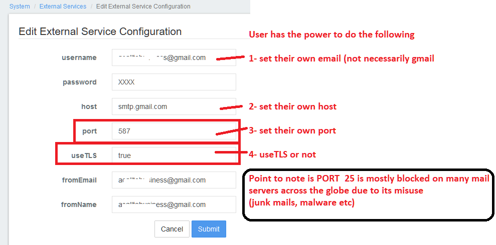 @BLasan - I like the approach from @ptuomola as he explains. also please note that a user has the power to set the port they want here below  As @ptuomola says this information is saved in table c_external_service_properties as shown below  ---------------------------------------------------------------- This is an automated message from the Apache Git Service. To respond to the message, please log on to GitHub and use the URL above to go to the specific comment. For queries about this service, please contact Infrastructure at: [email protected]